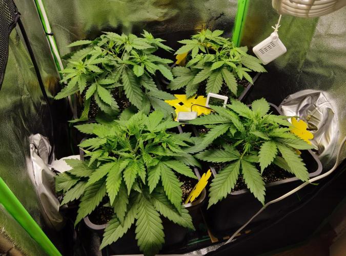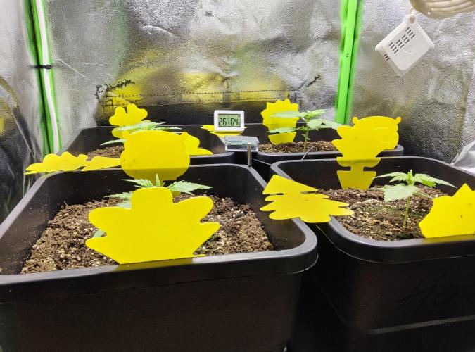 I had to deal with some fungus gnats during the week, so I threw a few more yellow sticky traps into the tent... but at least it doesn't seem to have gotten any worse.