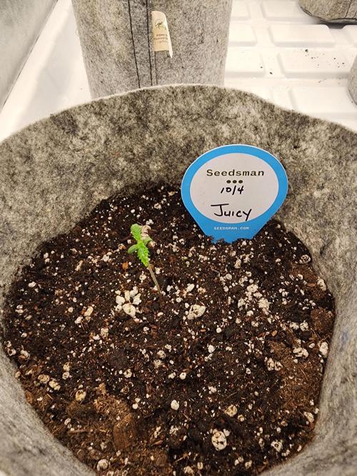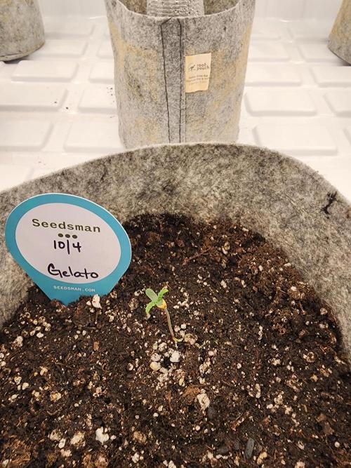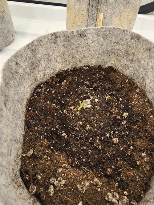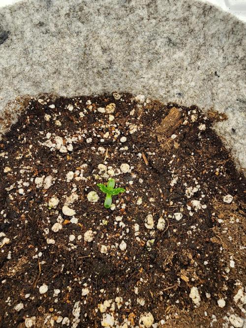 End of Week 1. 7 of 9 seeds popped. Germination took place in Gia Green Orgaincs living soil