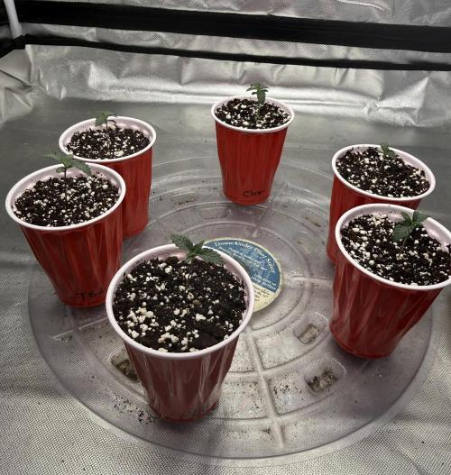 Decimotox We've completed the first week! They're showing their first sets of true leaves. Most are about the same size, but CO2 is looking a bit smaller than the rest. She could be a runt...we'll see. Not much to report! Just spraying them every few hours and letting them grow. In 7 days, I'll start giving them heavier and heavier waterings. Only spray bottle for now! I've kept my light a bit closer than I normally do and I've noticed the seedlings aren't as stretchy as I've seen in past grows. Thankful for that. Hoping these all grow with tight node spacing. Thanks again for checking out my journal! Especially here during the early and boring parts! Stay up :D
