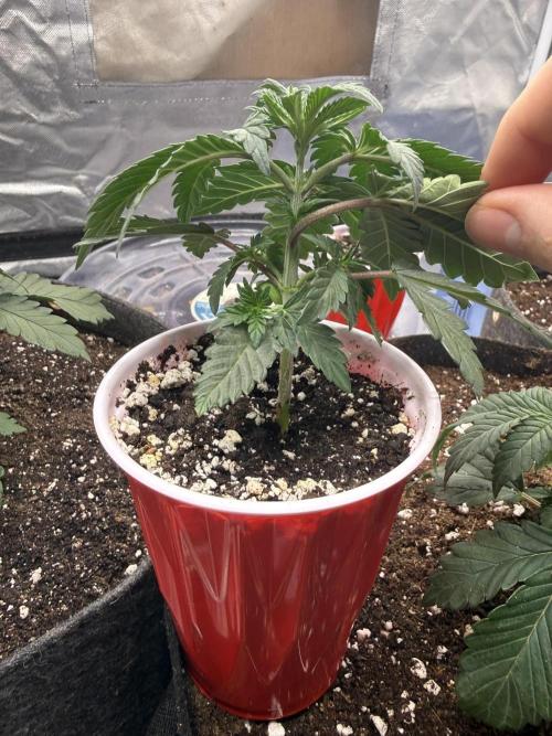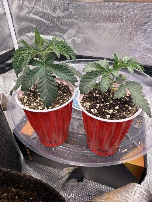 Not much else to report! Just letting them grow. Have been giving them more and more water. next week, we'll turn the humidifier down to 65% and they should drink a bit faster. Thinking I'm going to skip the intermediate transplanting step I've been doing the past few grows (solo cup to 2 gallon pot). I think I'm going to go straight from solo cup to 5 gallon and finish in there. I liked having the 2 gal pots but it feels like a waste because the plants don't end up using all of the 2 gallon pots, which means they don't take up the full 5 gallons of soil either by the end of it. Wasting soil and nutes. All this means is that I'll have to top dress twice instead of once, essentially.