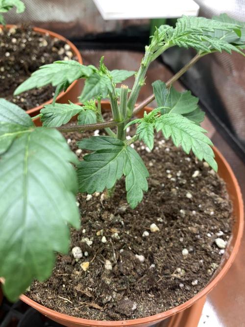 311Budz In der dritten Woche zeigen sich alle drei Amnesiac deutlich unterschiedlich, aber insgesamt geht es gut voran. Die stärkste Pflanze wurde erfolgreich getoppt, um vier Haupttriebe zu fördern, und hat den Schnitt ohne Probleme überstanden. Sie wächst schön kompakt und entwickelt sich genau so, wie man es sich wünscht. Die zweite Pflanze wurde ebenfalls getoppt, braucht aber noch etwas Zeit, bis sie die neuen Triebe richtig ausbildet. Man sieht, dass sie sich stabilisiert und langsam in Fahrt kommt. Die kleine kämpferische Pflanze überrascht am meisten – sie erholt sich sichtbar, bildet frische Blätter und wirkt jeden Tag vitaler. Insgesamt läuft der Grow gut
