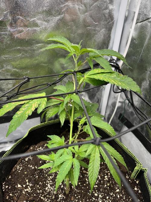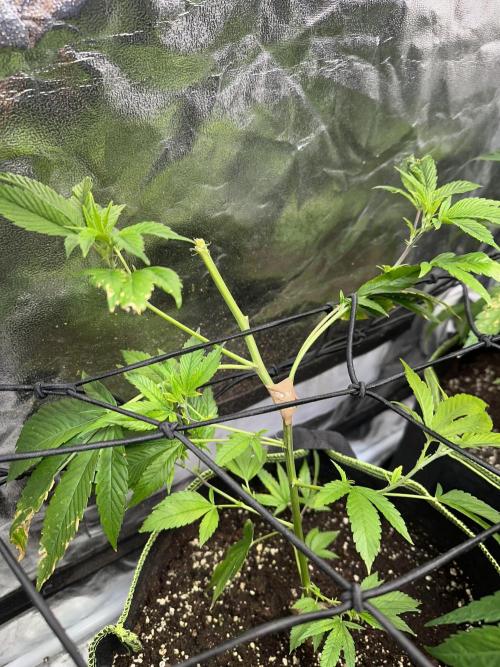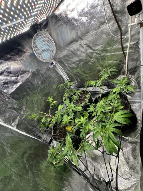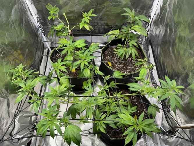 Scrog turned out very successful last run, so i am using my net again. This time there is a little tweak to it. My little Mr. Jack Herer is way bigger then both the mimosa and the blueberry combined, so i really have to keep an eye on an eaven canopy, to avoid blindspots. Might still change their position in the tent before flower. Not yet that happy with my arrangement. We will see.