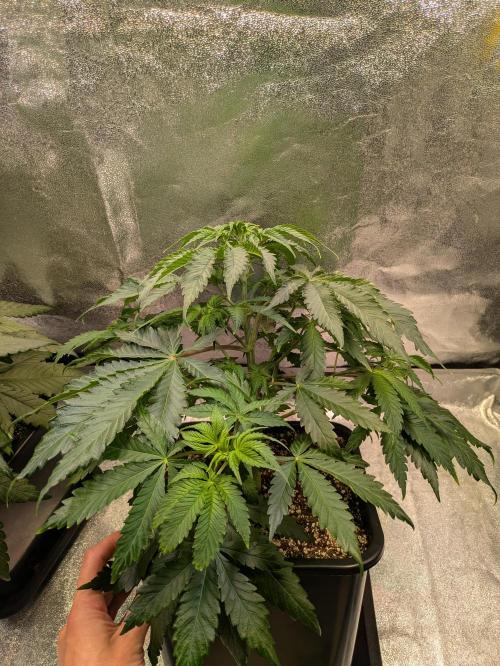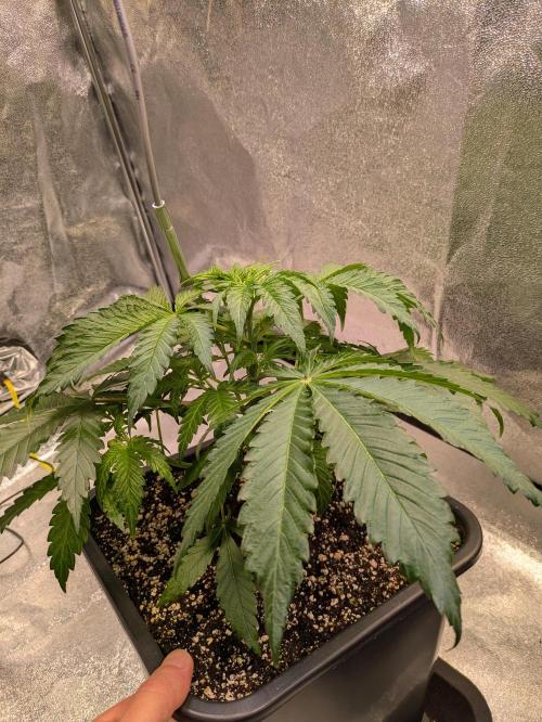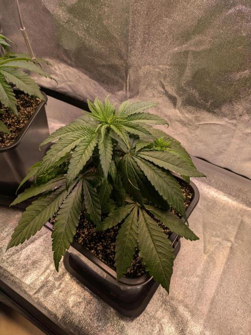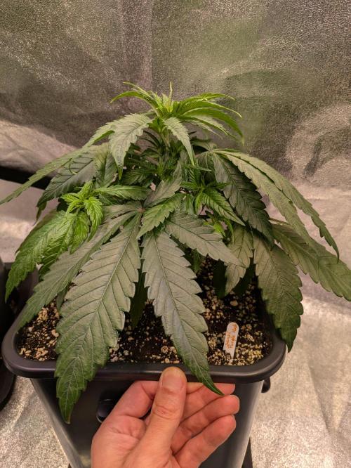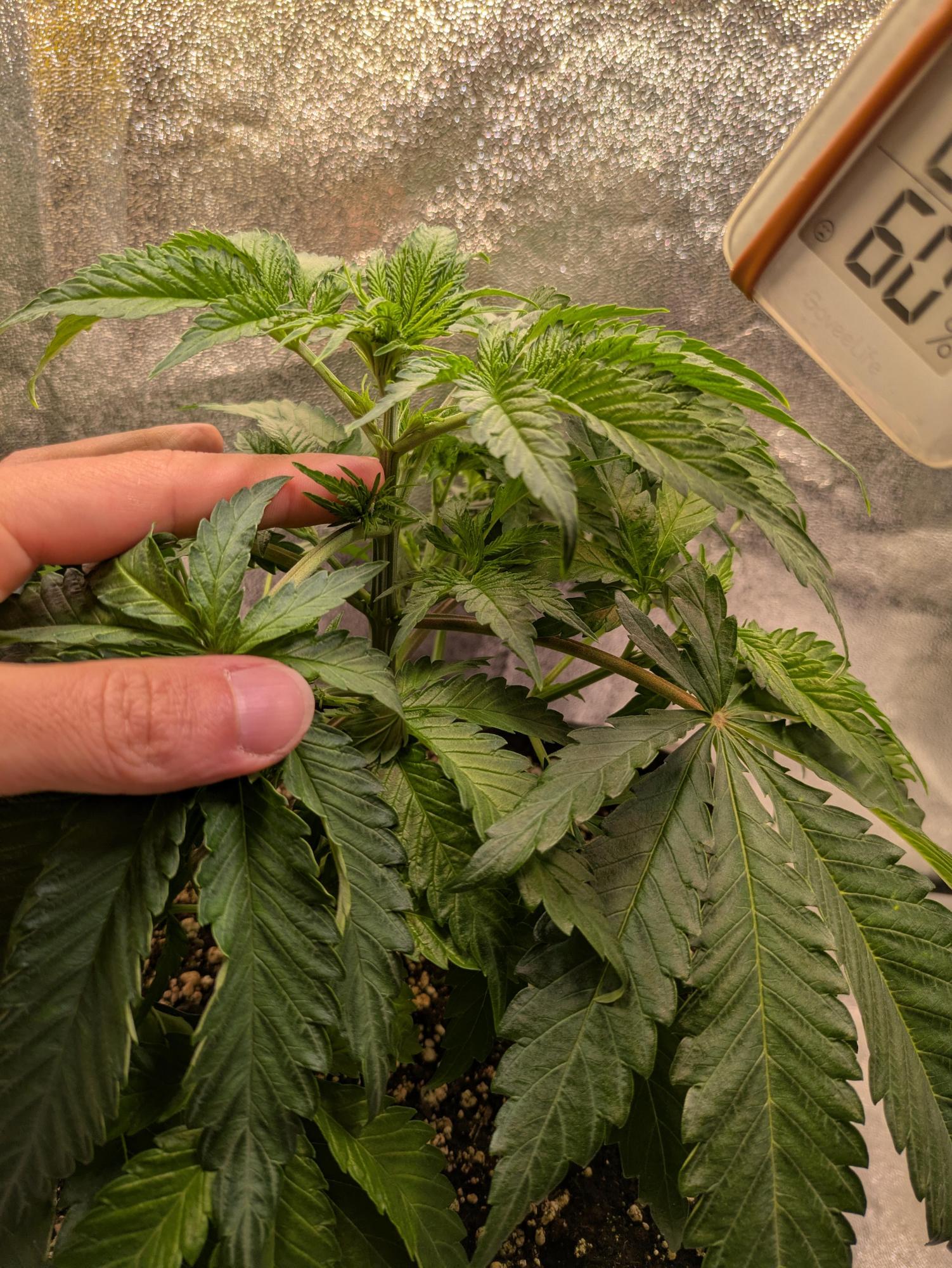 Das sieht nicht so schlimm aus. Solche Blätter können öfter mal an Anfang vorkommen wachsen sich aber aus. Habe das öfter gehabt.  Ist mir auch einige mal passiert das beim ersten umtopfen die Wurzeln beschädigt habe kann aber auch genetisch bedingt sein. Check mal meinen Runtz Muffin grow und schau dir die Blue Sunset Sherbert an die sah schlimmer aus und war am Ende Top.