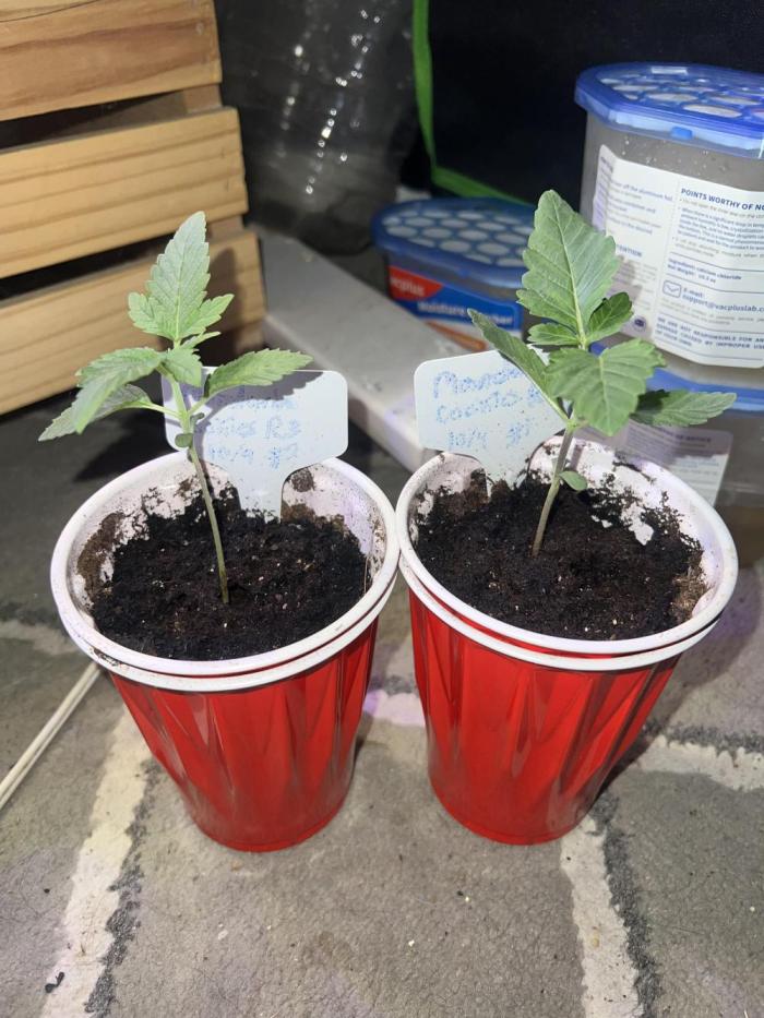 Later that day I placed both seeds into dirt as the roots popped out.. hoping to get pass the seedling stage before I harvest the LA kush cake