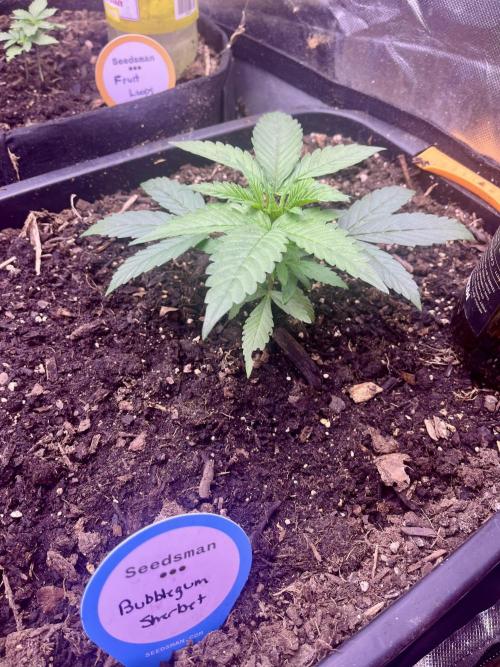 PlantMike We see bubblegum sherbet sold through Blimburn seed after its germination. Only got 1 seed of this as a freebie but within 48 hours she was popping a tail out of the bean. Planted into a cheap garden mix I had leftover (big mistake) and nursed it along. Good vigor from the seed! Let's get it going!