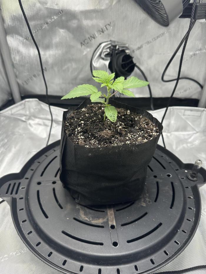 TugMasterson New grow, here we go! Excited to grow another of my favorite "legacy" strains. It is off to a great start, I've never seen (albeit my experience is limited) a seed show green that quickly, it was over night! Did my typical germination routine of letting the seed sit in a glass of water over night and then into a moist paper towel in a plastic bag. Once there is a bit of root (as seen in photo) it is time to plant. Used the fabric nursery bag again so transfer will be easy. Will probably have to use the heater since outside temperatures are really dipping. This is my first time using a non-Royal Queen seed, will be interesting to see how it goes.