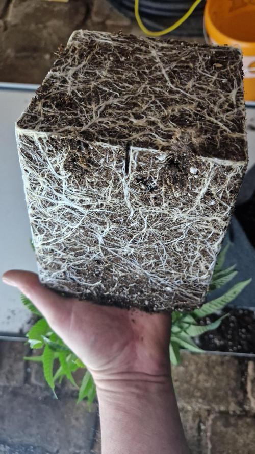 Wenn die Erde trocken ist, kannst du das gesamte Teil aus dem Topf ziehen, so kannst du sehen, ob die Wurzeln schon den unteren Teil des Erde erreicht haben, dann würde ich es machen ✌️