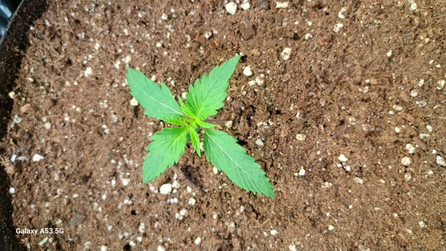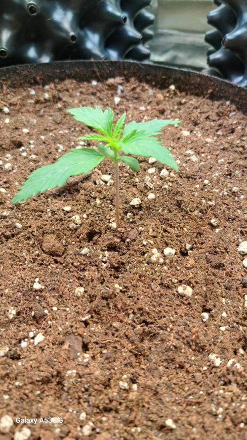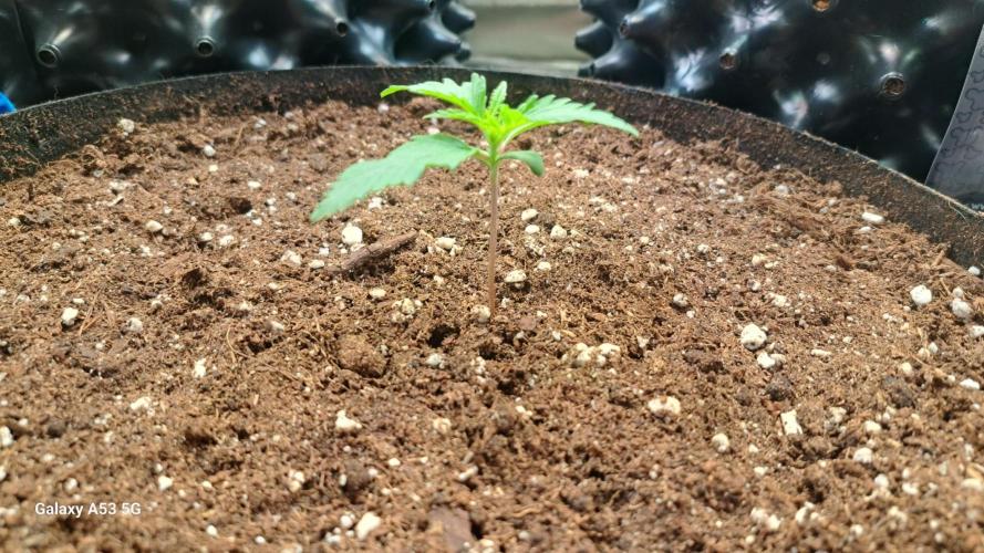 Daedra habe sie 12 h im Wasser glas einweichen lassen und anschließend im 20 l stofftopf in einer Kule mit 5 g Mykorhiza eingesetzt, nach 3 tagen ist sie gekeimt. Sie sieht vital aus und kommt sobald die Futur fertig ist ins 60er Zelt. Dies ist das Projekt meiner Freundin von nun an ich werde nur berichten.