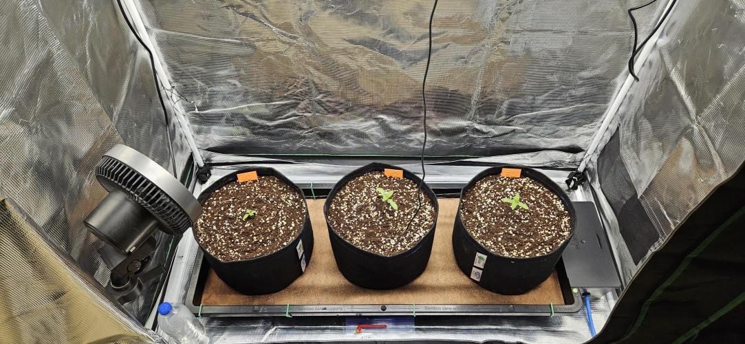 FeebleSnane I am NOT fucking around this time. I have an incredibly bad record of feminized plants growing pollen sacks or nanners, and this time I'm taking zero chances with stress. I've grown 5 separate grows before, two of them at the same time which I consider the "fourth grow", and this is the 5th grow. Of the 4 prior grows, 3 of them resulted in pollen sacks on plants that were supposed to be feminized. All of those plants were genetics from Royal Queen Seeds or FastBuds, and this time I'm going a completely different direction. This grow is with a triploid genetic that is allegedly incapable of producing seeds or reproductive parts (aside from flowers). In my previous grow (Grow #4.2), I tried out AutoPots for a watering system. I fucking loved it for that grow, so I bought a better system for this tent, and I'll be growing 3 plants with it. The plan for this grow is to have 4 main branches coming off the trunk. I want to grow those 4 branches as well as I can, and put them through a net to keep a nice even canopy. I also want to get far more aggressive with my lolipopping and defoliation this time around. I need to be more confident in the way I remove small buds/branches prior to the flower stage, so I get only high quality buds in my final yield. For germination, I put 3 seeds into a wet paper towel in a bag, then placed that bag in my server cabinet. The cabinet stays about 80F-85F, so it should be a cozy temperature for the seeds. This particular strain is supposed to have a lower germination rate, as mentioned by the breeder, and one of three seeds had a great germination period. Two of three seeds broke open, but don't seem to be vigorous seeds. I'm glad that all 3 broke open, but from past experience I know that 2 seeds will be noticeably behind the first. I planted the seeds in the tent in order of strongest to weakest germination. The seed with the longest root was planted in the left-most pot, and the seed with the shortest root was planted in the right-most pot. Pray that this doesn't turn into a one plant grow.