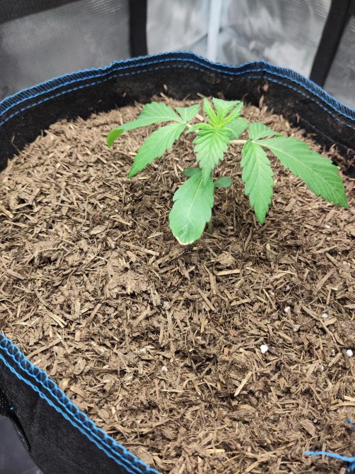 Since I had a vacation coming up at the end of the week, I was hoping the Banana OG would be a bit further along by now. But due to some poor planning (and the 3-plant rule 😅), the seed went into the soil later than planned.