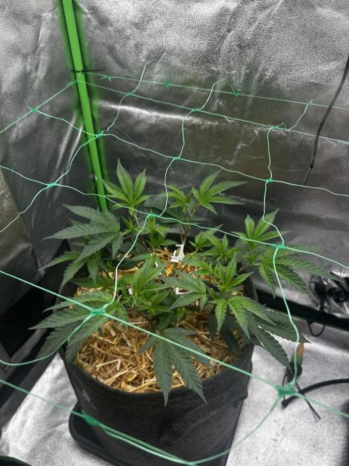 Last week, I topped her after the 6th node. Yesterday, she was transplanted into 30L pots and moved into the final tent.