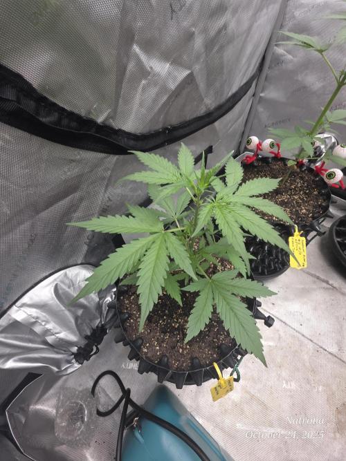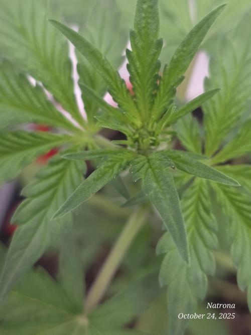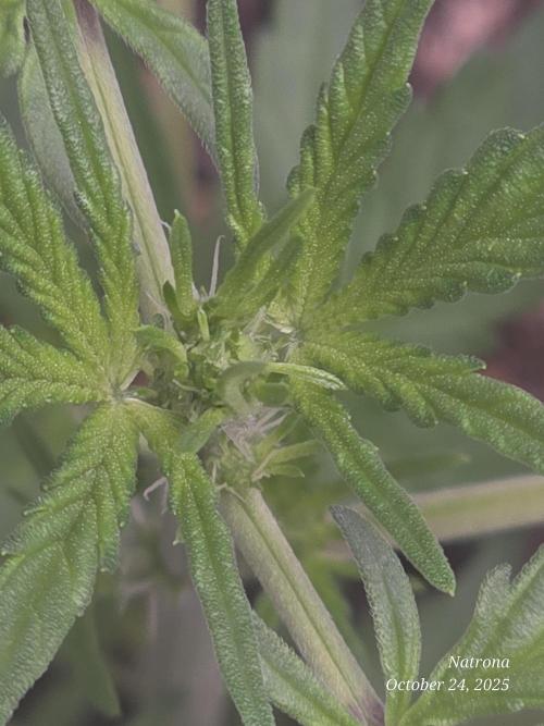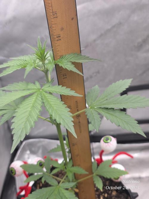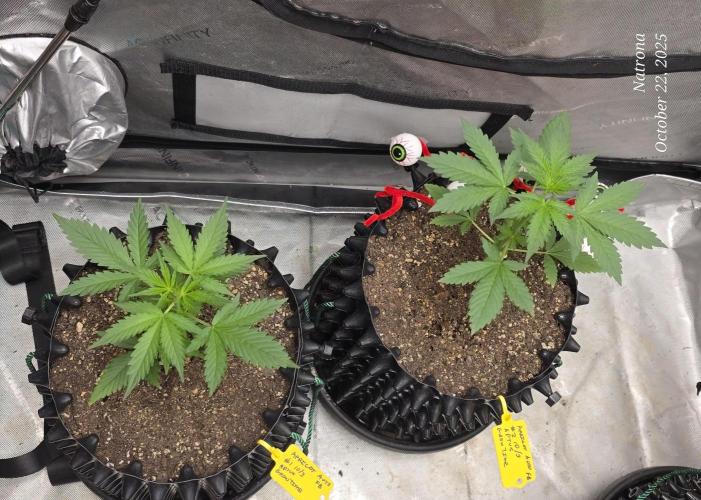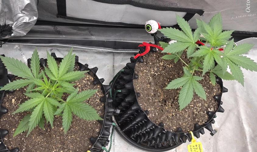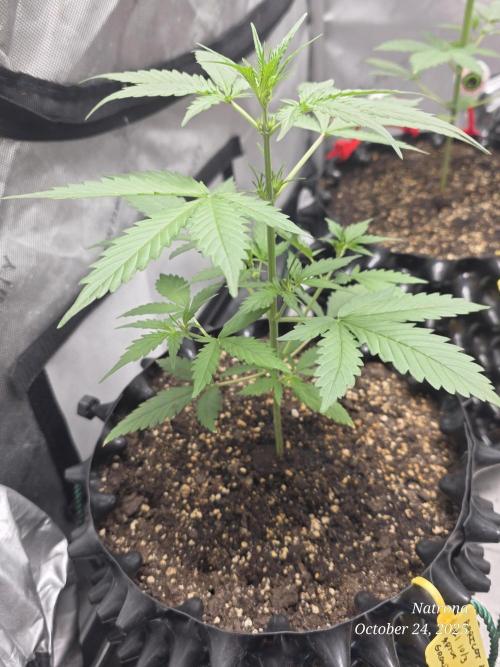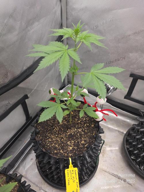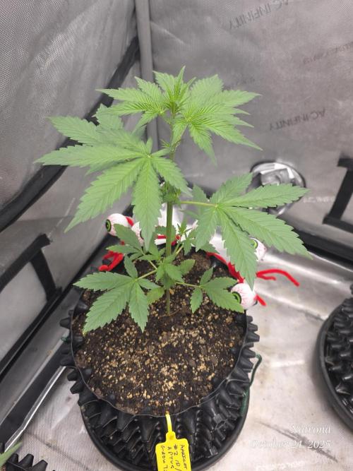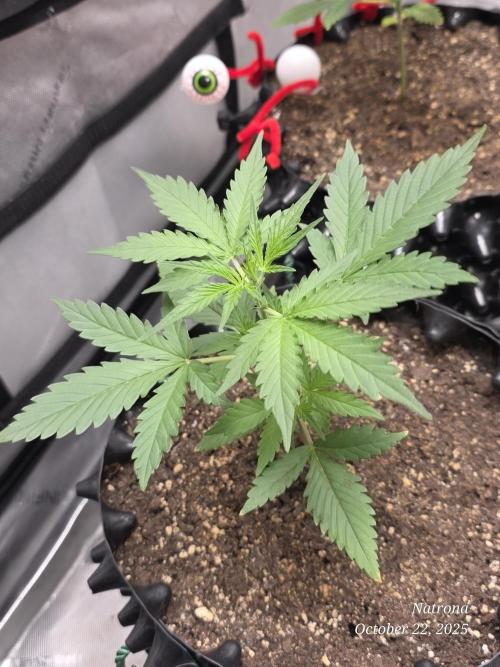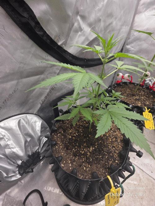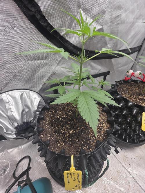 9/30 Then placed the uncracked seed into a root riot cube and placed it in a 4” starter pot with seed start mix, a light sprinkle of Dynomyco, and lightly covered and misted. The seeds went into the 3x3 in the dark to germinate.