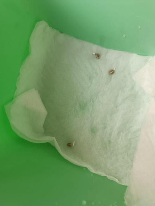 12/10/2025 – Here in Brazil, we celebrate Children's Day. I put the seeds in water: three seeds in a solution of two-thirds water and one-third H₂O₂ for 12 hours. When the radicles started to appear, I transferred them to a wet paper towel.