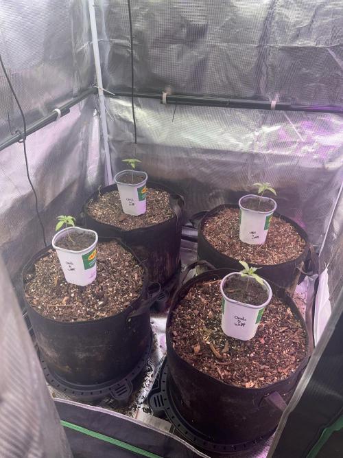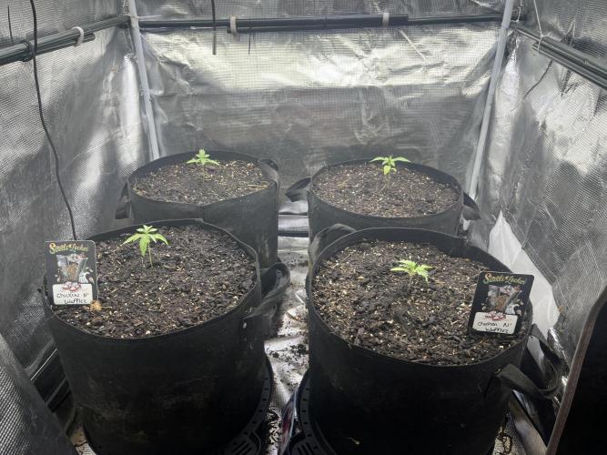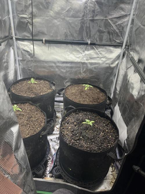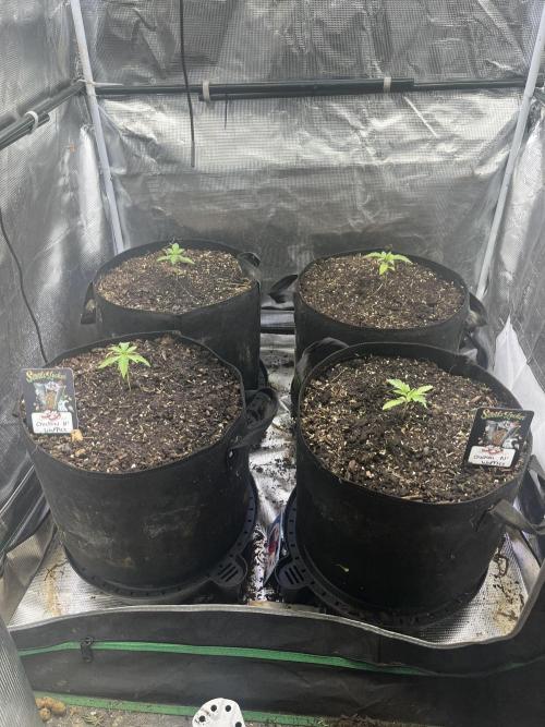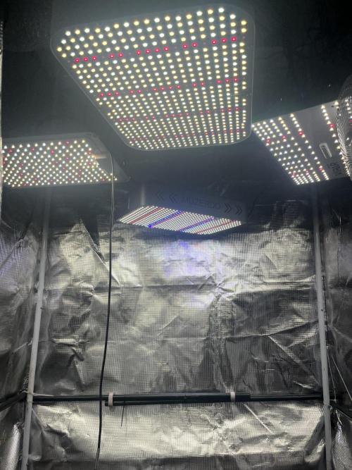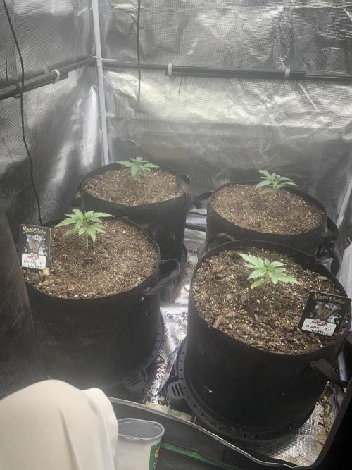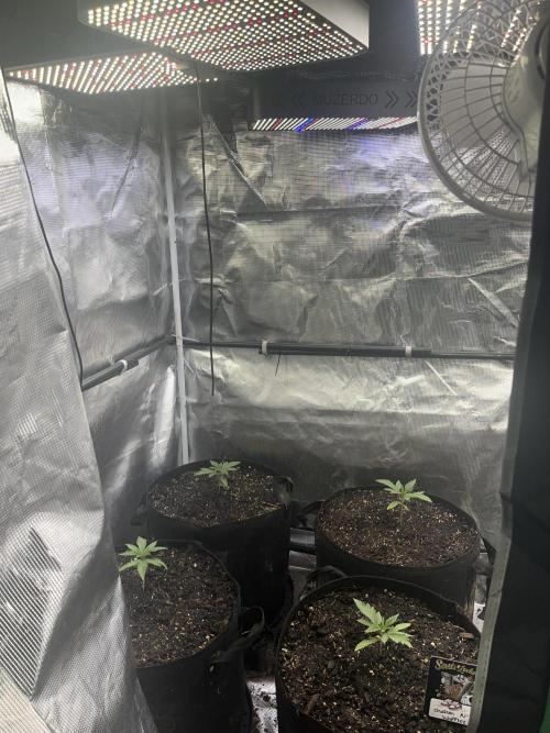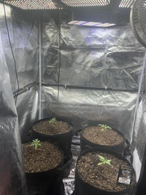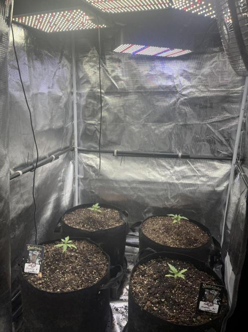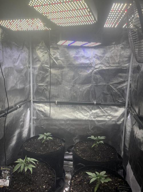 PlantMike We pick this grow up in week 2 veg on the AC Infinity self wicking pots. Growing in living soil on its third run amended with down to earth nutrients and rice hulls for aeration. Growing the new Chicken N Wafflez cultivar from Humboldt which I hear is a banger so I'm excited to get this going, the light array is eccentric for sure, these are the old lights that I've phased out in my other tents but got a second lease on life when I decided to start a third tent. So far growth has been picking up, AC Infinity controller 76 running the vivo sun inline exhaust fan and oscillating fan. Let's get growing!