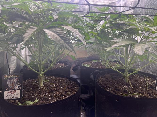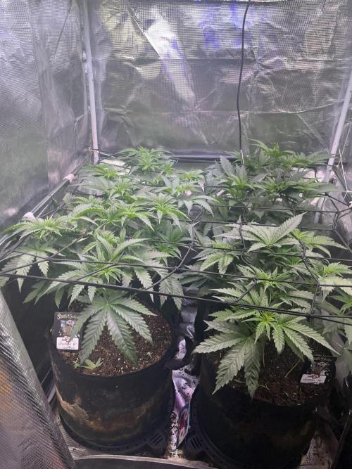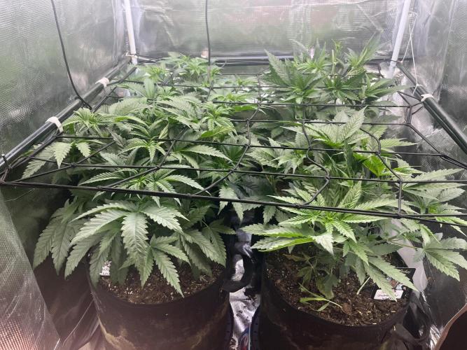 PlantMike We are in top gear growing like crazy now. So as not to over veg the pots I flipped to flower and did an initial defoliation in the under canopy to ensure proper airflow, where this tent is has little heat so keeping the temps up has been difficult but it doesn't seem to be affecting the growth. They are scogging nicely and making ole plant mike proud!