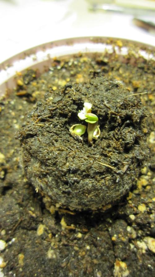 It was the wet soil that was used on these plants. I was looking at the last seed up and when I was poking around with a tooth pick I found about 6 little white wormy things on the little seedling and I can see why now that one was struggling. I'm going to have to treat the soil next watering.
