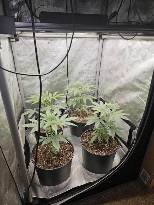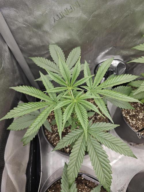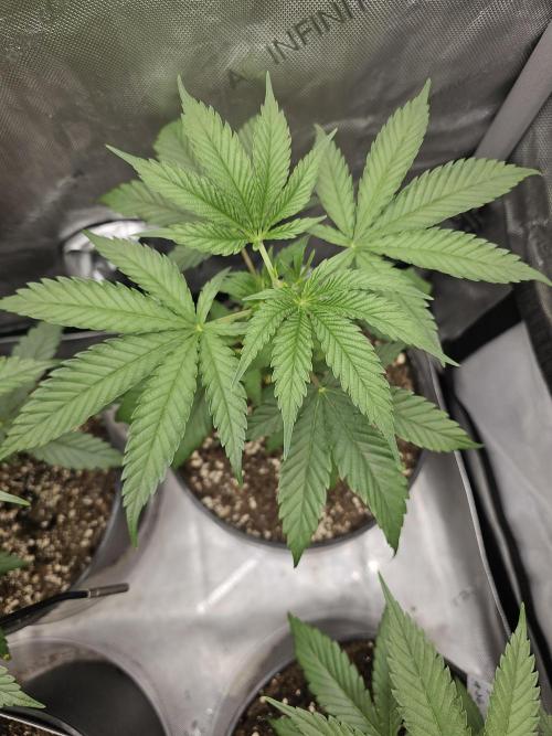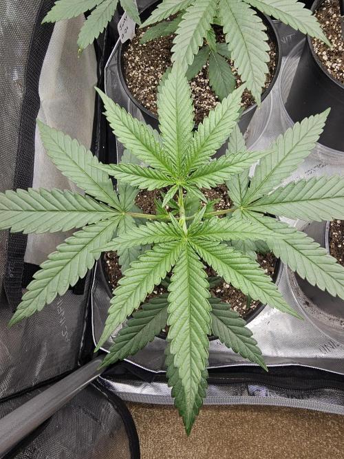 A little bigger than getting ready to flip to flower. Sprayed with Lost Coast Plant therapy.