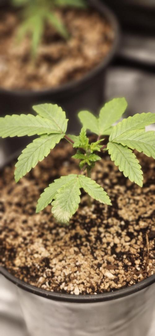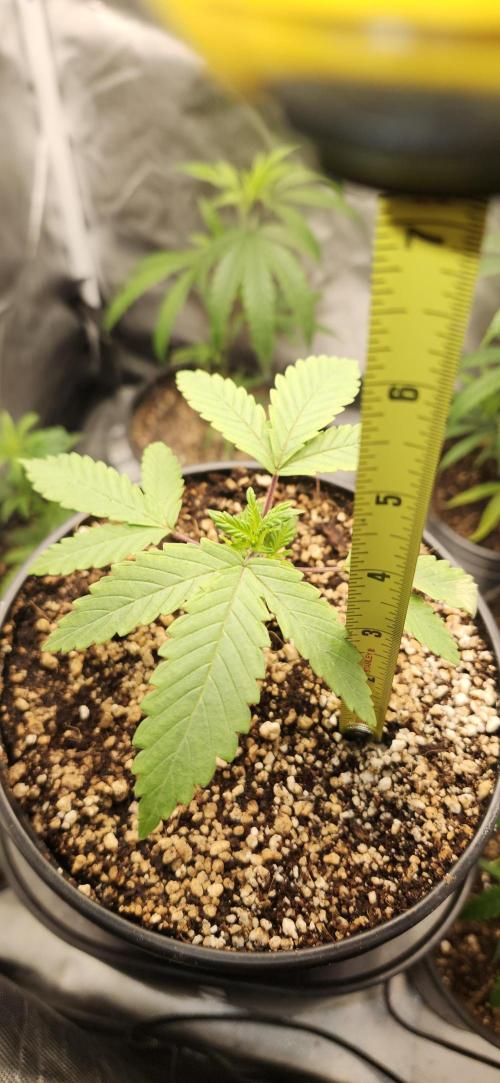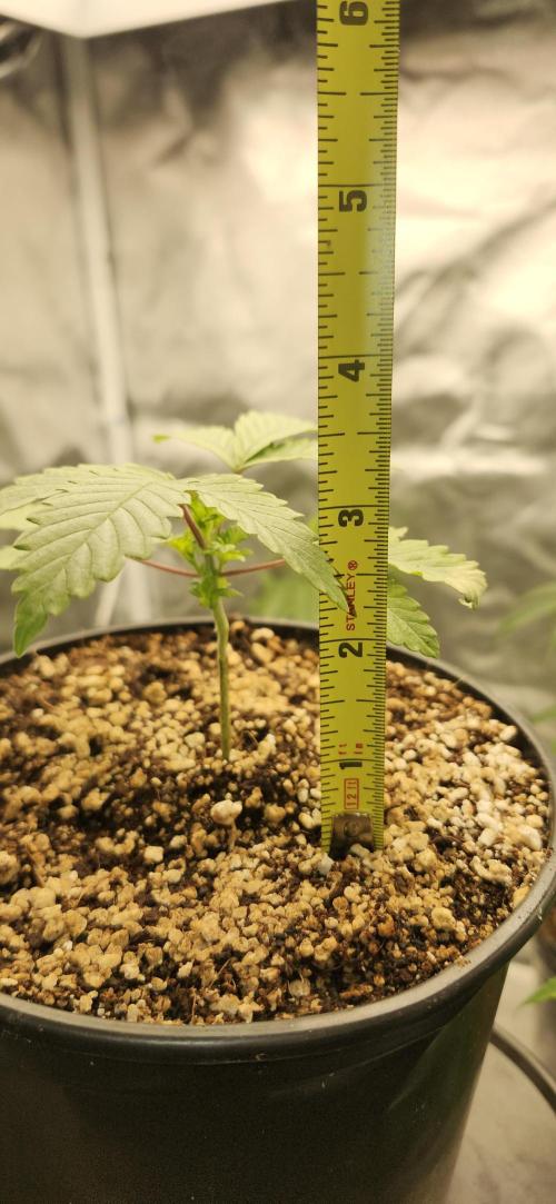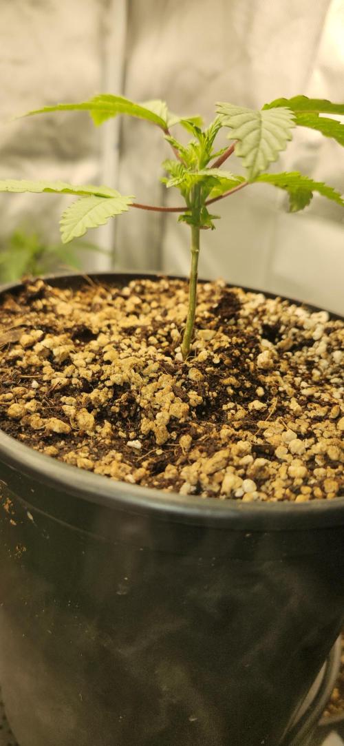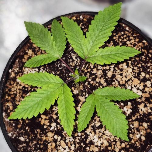 GREENPHOENIX6262 10/12 - Coming along nicely - thus far no issues - All true leaves have dropped - Transplanting into 1 gallon pot this week - Light nute feeds will begin this week as well. Healthy root zone.