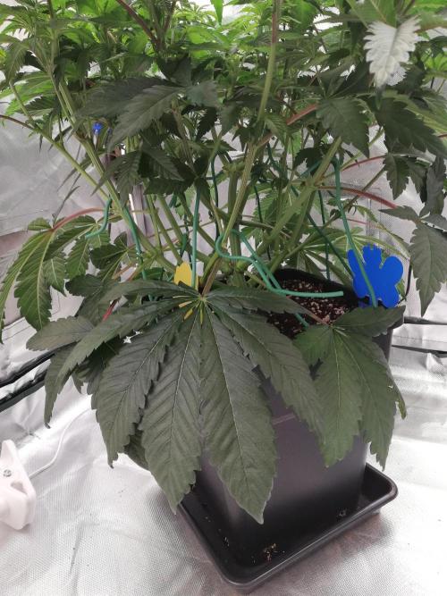 Dann kam sie in den 11L Topf mit der All Mix von BB und dort lass ich sie jetzt auch. Die 11L hab ich mit 4g/L Substrat vermengt. 2 Wochen bevor ich sie in die Blüte geschickt habe, gab ich dann noch 5g/L Substrat Bloom hinzu und 1g/L Wasser von dem Enhancer im Gießwasser und das alle 14 tage wie in der Anleitung bei dem Enhancer.