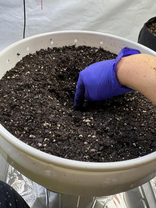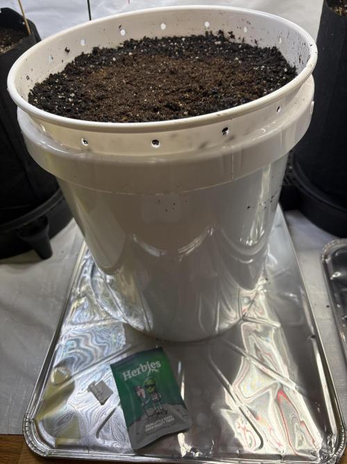 BossberryFarms Excited to get started on this 3rd grow of Bruce Banner Autos! Decided to try 5-gal buckets this time. I drilled holes in the bottom for drainage and around the top rim to assist in tying down branches.