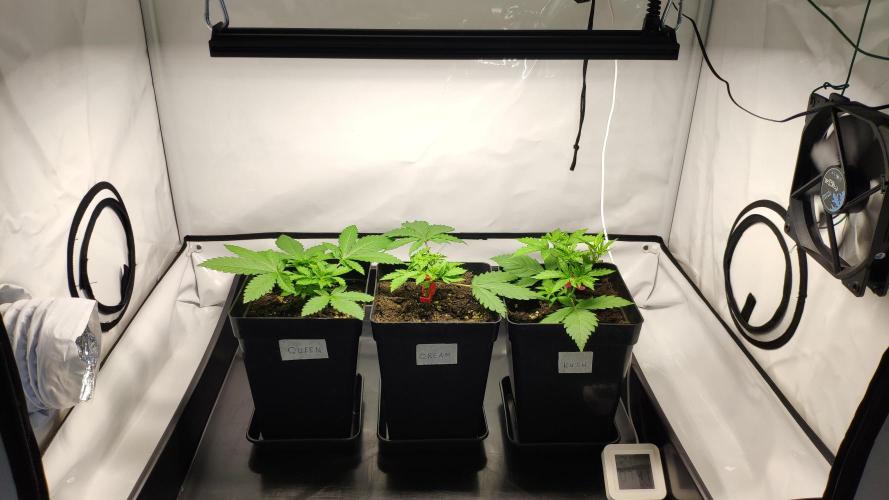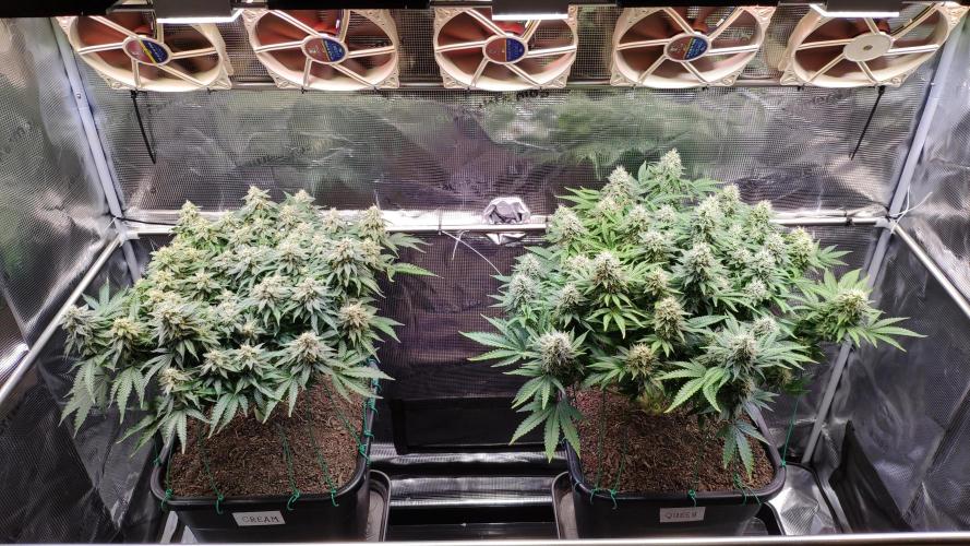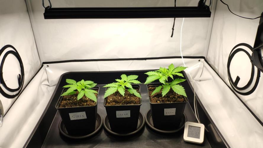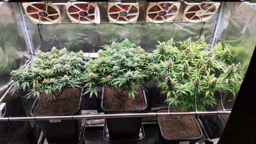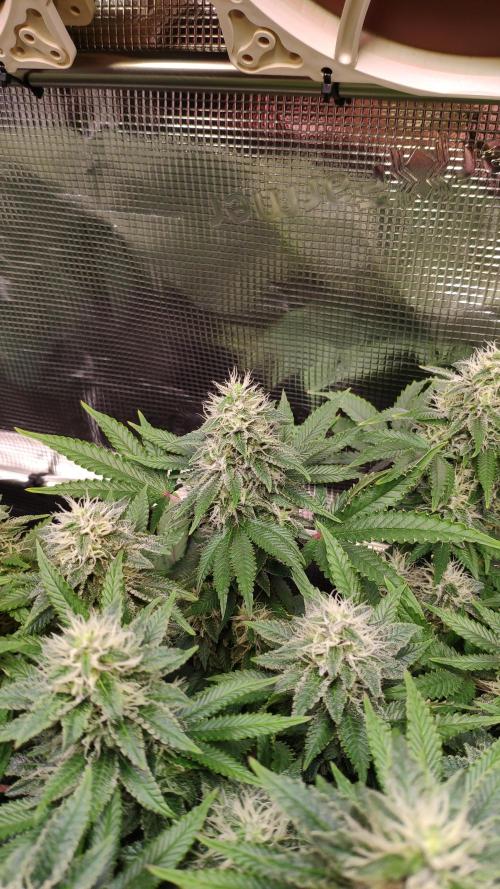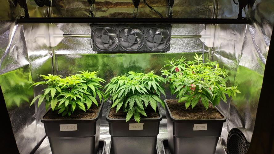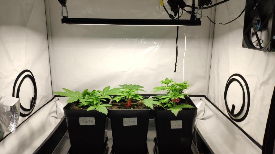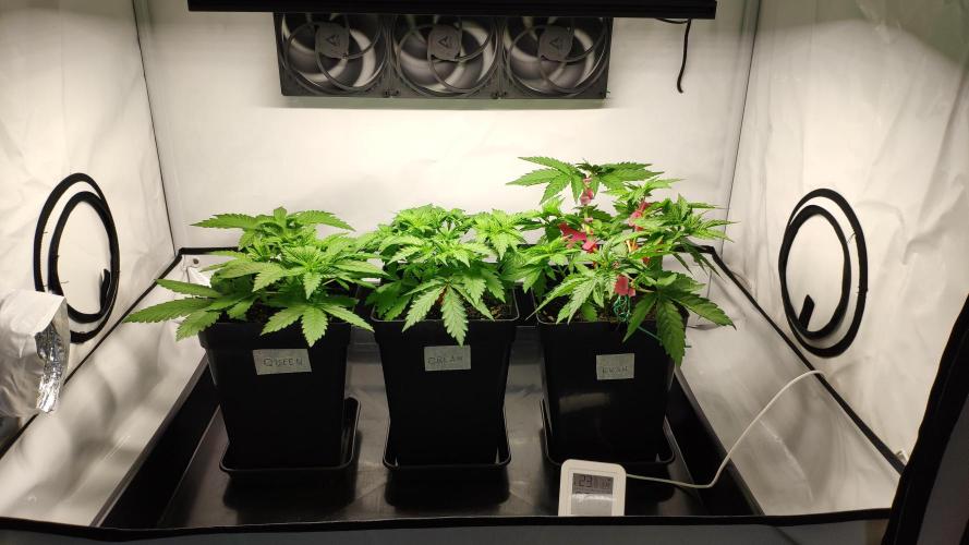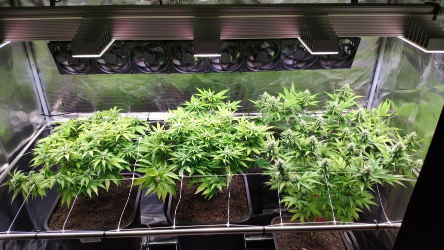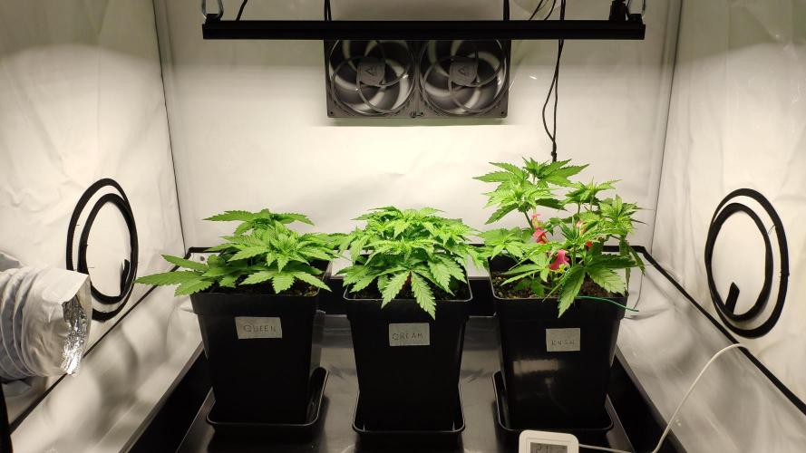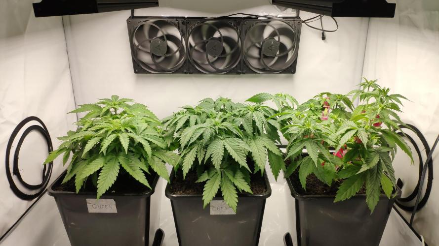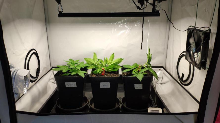 tantrumrage Kush #1 will be an early finisher, Honey & Cream is already getting really frosty and Queen #1 is chugging along. Added the Artic fans on top of the light.