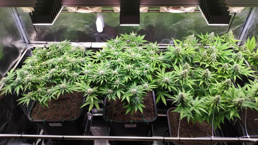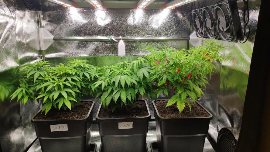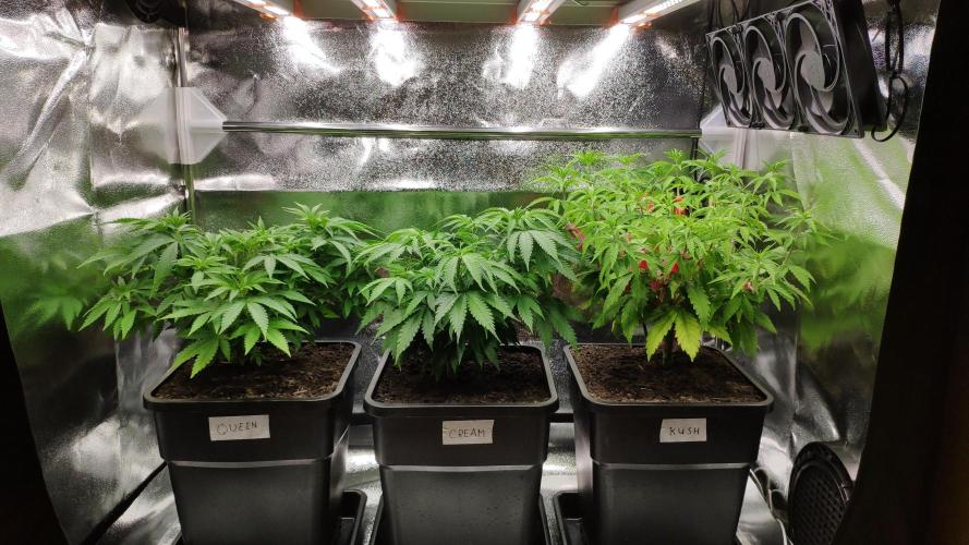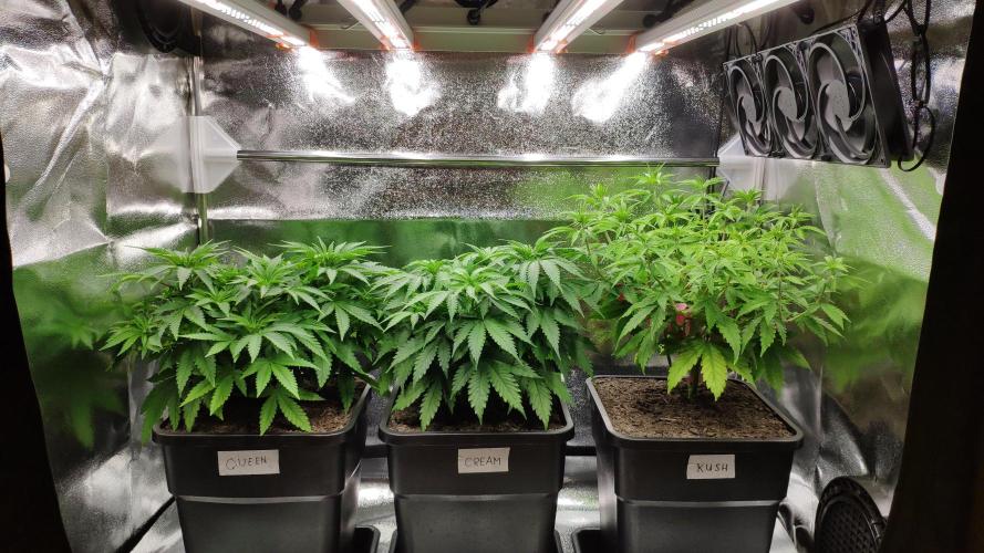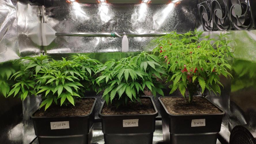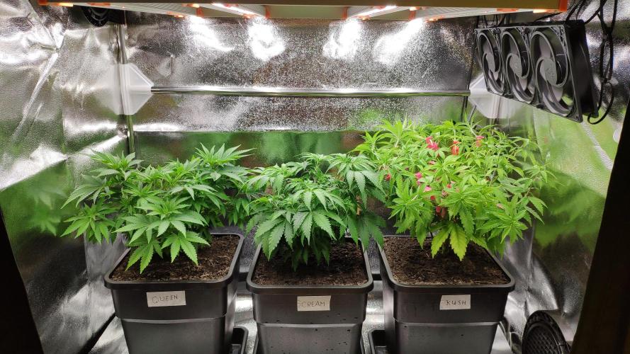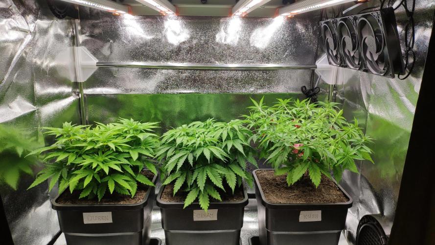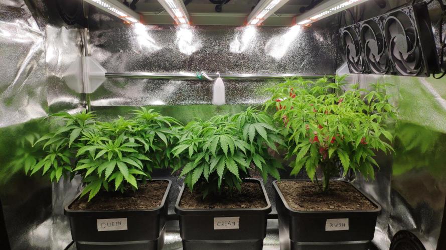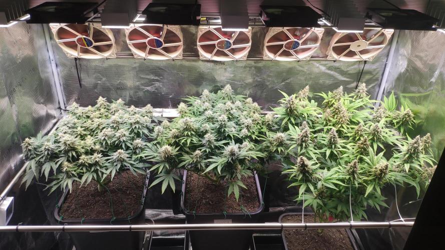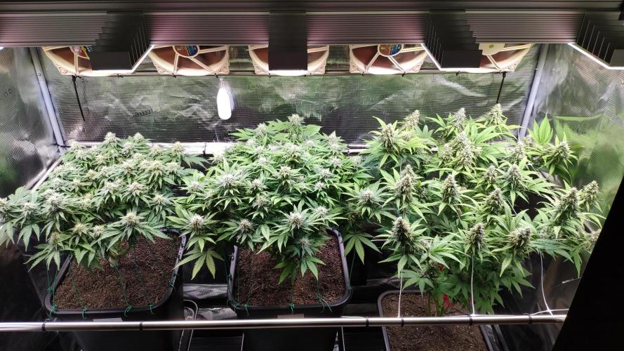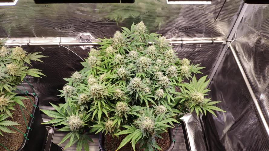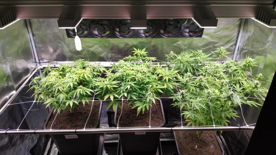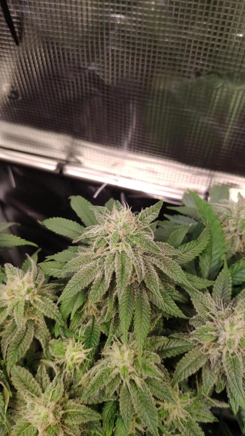 tantrumrage Kush #1 will be an early finisher, Honey & Cream is already getting really frosty and Queen #1 is chugging along. Added the Artic fans on top of the light.