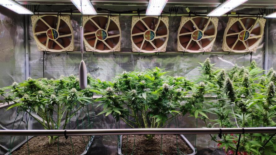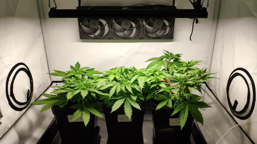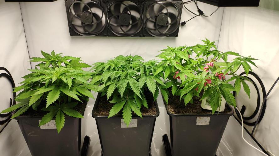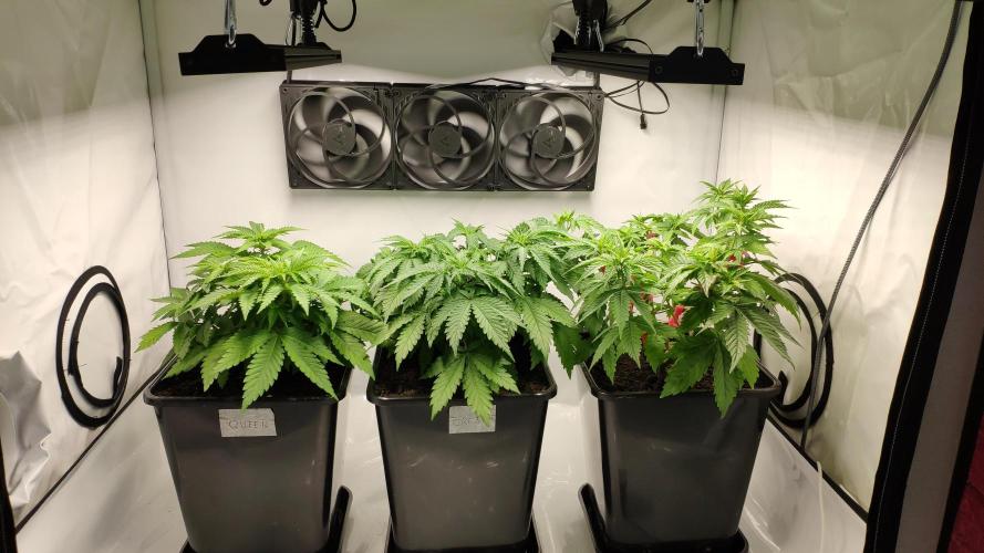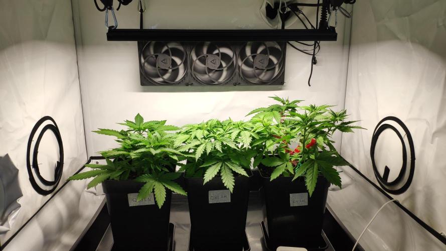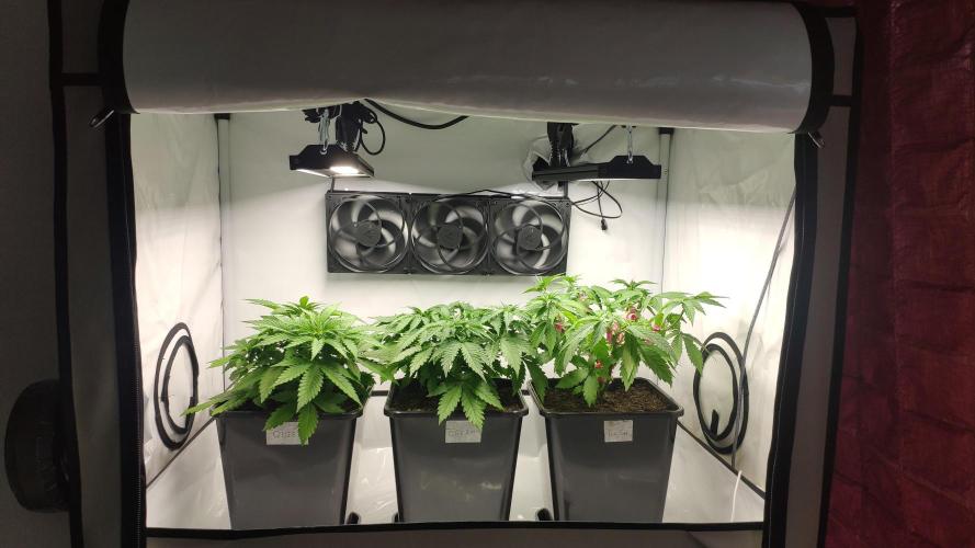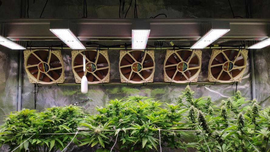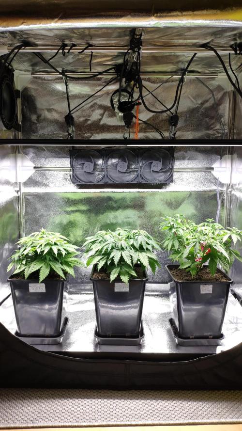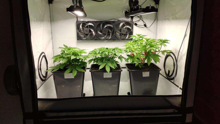 tantrumrage Steady growth and the smell is getting stronger now, switched out the Arctic fans for bigger Noctuas. All 3 are looking a little bit hungry so I'll increase nutes next week.