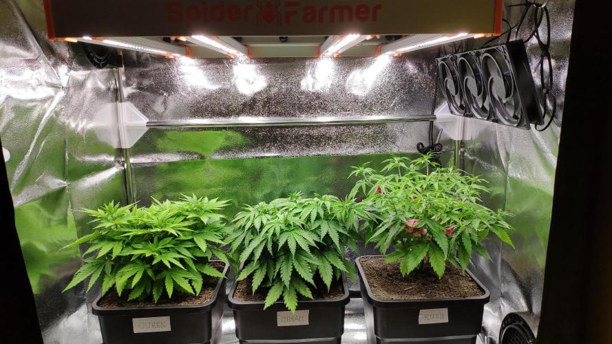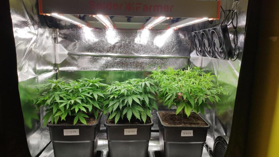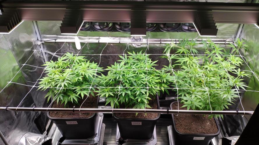 tantrumrage One picture for each day of the week :) also switched to the Spider Farmer G3000 for better light spread. Kush #1 was starting to get a bit hungry so I've started giving her double the dosage of the other two (and also defoliated her once again).