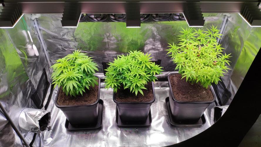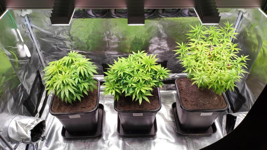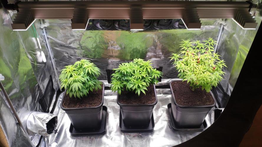 Moved them into a bigger tent Spider Farmer 4x2 and under a Sanlight EVO 5 150 oh and also another transplantation into 18L containers.