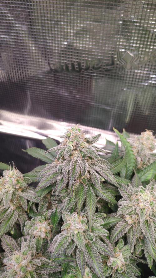 She was a quick grower and also really fast during flowering, sadly she developed nanners so I had to cut her down early. She had quite pretty buds and a pungent aroma couldn't say whether it is actually Kush or not.