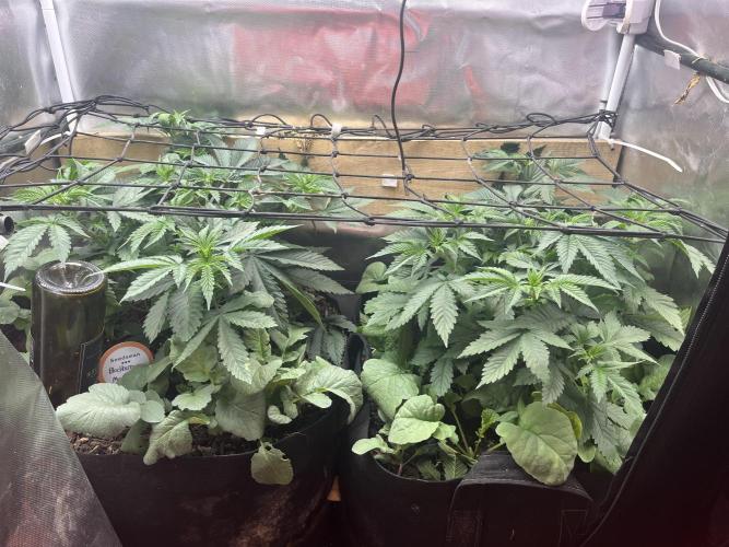 PlantMike The girls in this tent have absolutely exploded into growth. I topped them a couple days ago and the lateral branches are extending out like crazy. I added a Scrog net last night to let the laterals grow up into them. Moisture is staying pretty even, Humidity is perfect at 68-70% and the lights have been turned up to 100%. I don't want over-veg these girls so I will probably flip the light schedule to 12-12 by the end of the week. Can't wait to see what these two look like at next weeks update!