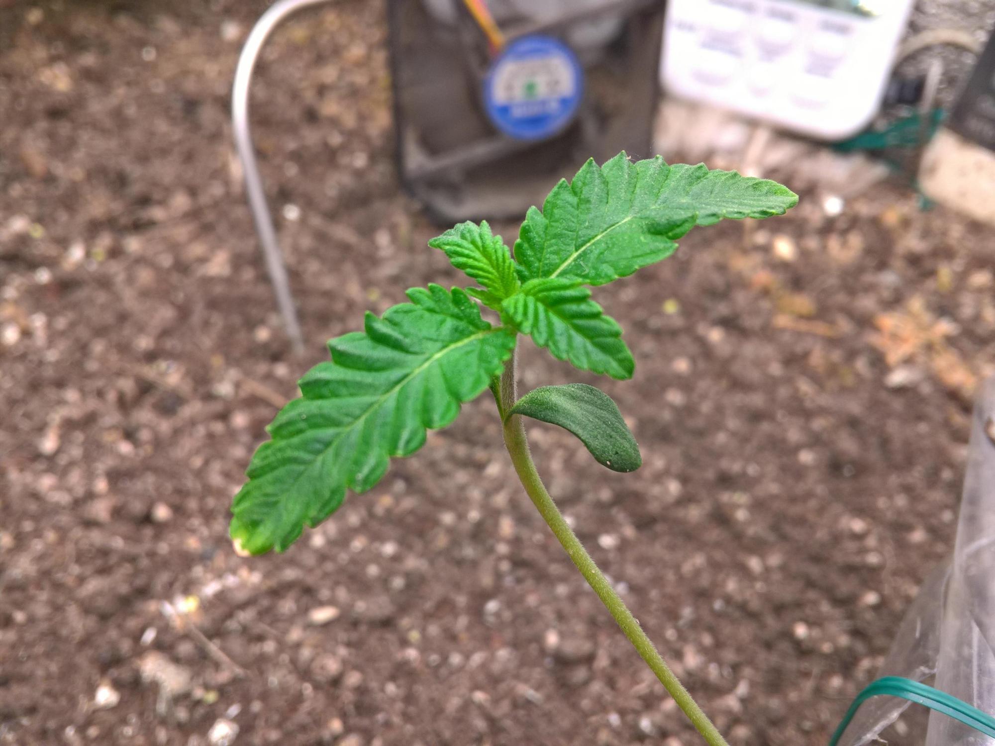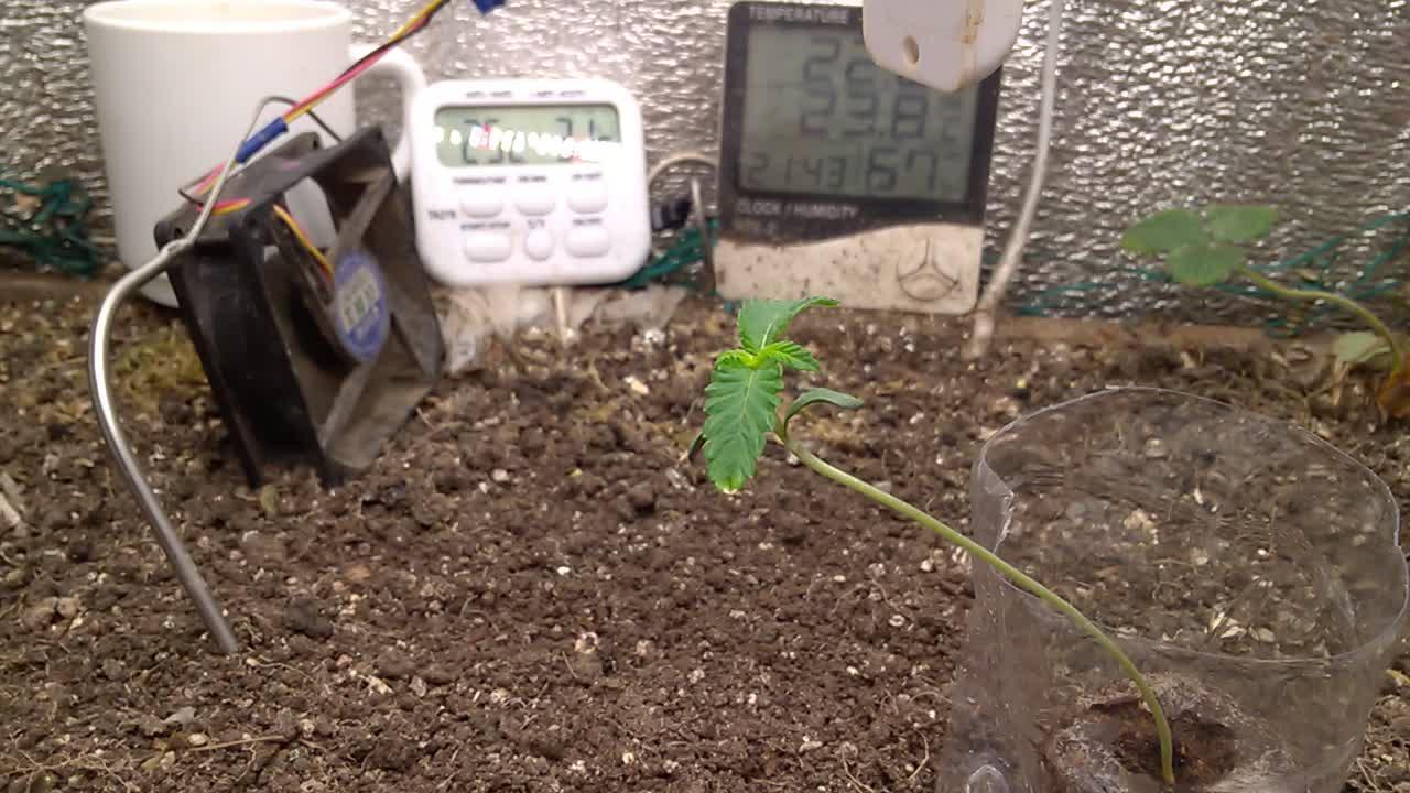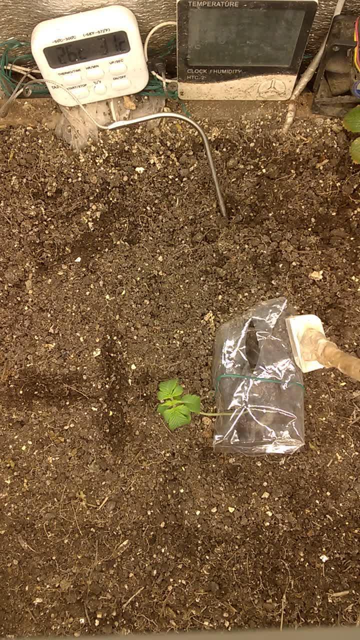 LST training continues. Plant's stem buried under soil to make it shorter. First couple of lower leaves getting sick and yellowish 😟 perhaps because there is no pH meter.