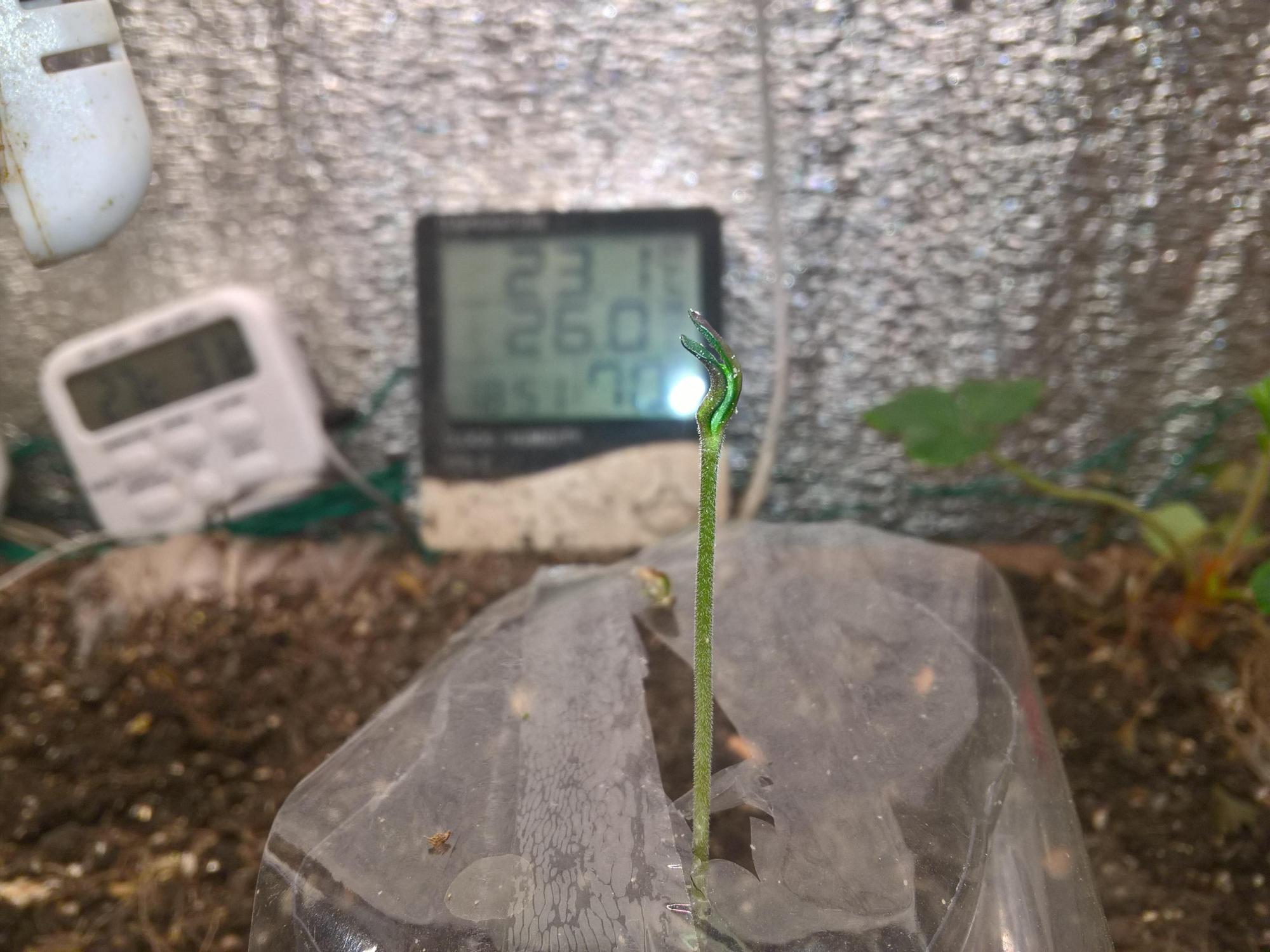 Evening. First watering.😭 The leaves are open. First hydroponic feeding: 0.3g + 120ml water - base solution (1/4 of the recommended dosage for young plants). So, I made 120ml of base solution, which has to be used like this (according to chatbot):