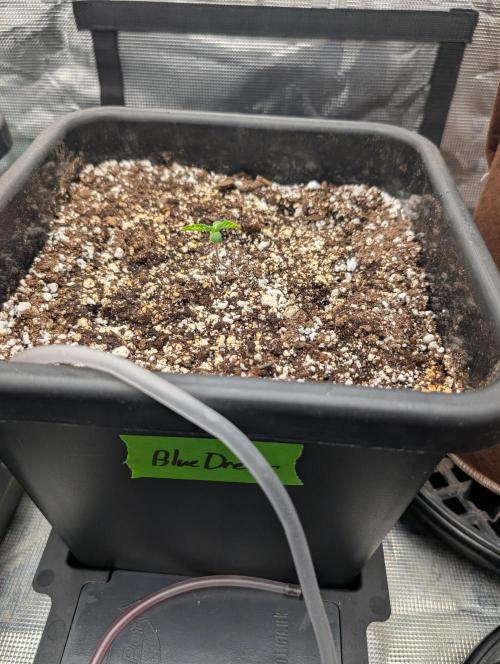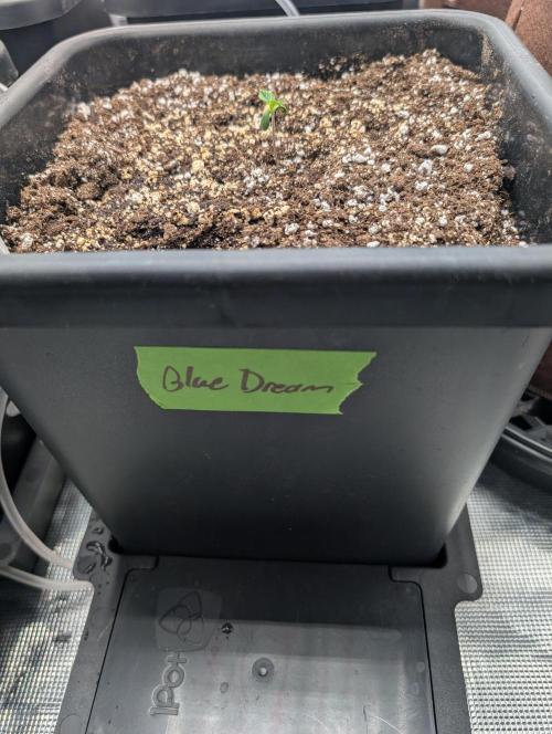 Grow_for_Happiness Here we grow again! This is Blue Dream, another strain I've wanted to try for a while now. Watered 3L with nutrient mix then planted seed directly in substrate and covered with a dome. 4 days later they pushed through. Two days later (today) removed the domes and starting veg week.