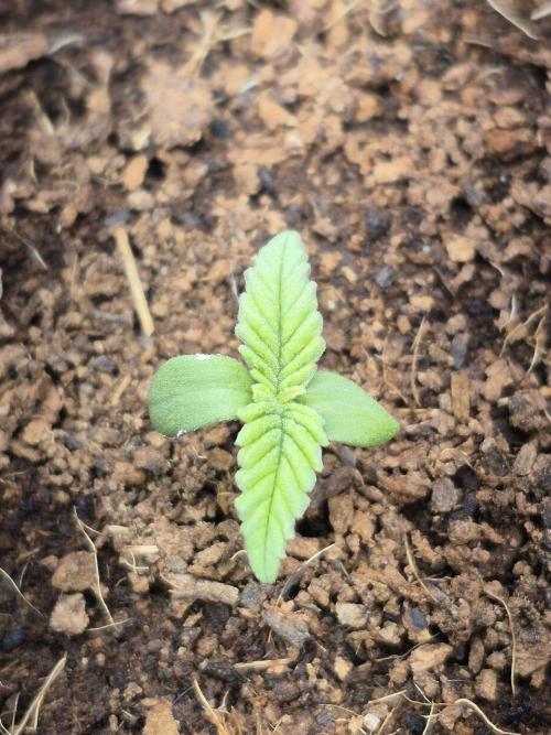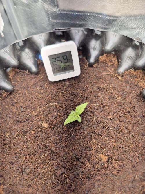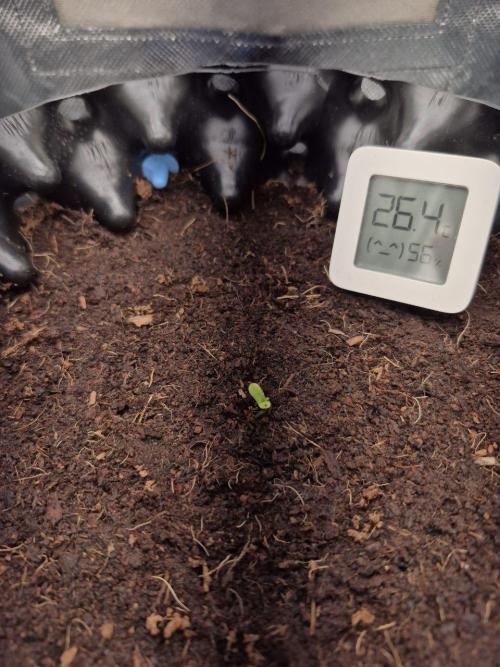 ksenti 13.10.2025 - 18.10.2025 It felt like during days 2–4 the plant didn’t want to grow at all — the leaves barely gained any mass. On the 4th day, I realized my mistake: during the first watering, I hadn’t supplied the plant with enough essential nutrients, as a yellowish tint started to appear on the leaves. So I decided to water the entire substrate again with 1 L of solution, this time adding Calcium Magnesium, hoping I wouldn’t drown the plant in the coco. By days 5 and 6, it seemed to start recovering — the leaves noticeably increased in size, though the yellow tint remained. In the next days, I plan to water with 200-400ml of water with the same amount of nutrients. I’m not sure if that was the right decision — if anyone can comment on it, I’d really appreciate it =) ----- This part should be in the Germination section, but for some technical reason, I can't save it. I will move this later. Hi! This is my second grow — the first one was two years ago in soil. This time, I decided to try a coco substrate. Setup: * 50w Samsung LED * 6-liter pot * Canna Coco Premium Plus substrate On October 11, 2025, I soaked the substrate and planted the seed directly into it, placing it under a makeshift greenhouse made from a bottle. The seed sprouted on October 13, 2025. First mistake: Before planting the seed, I watered the substrate with 1 liter of water containing: * Root Booster – 5 ml * Tri Part Grow – 0.5 ml * Alg-A-Mic – 1 ml * 300 ppm * 6.1 ph The water's PPM was 180, and after adding the nutrients it went up to around 300 PPM. I was afraid to add TriPart Micro and Bloom to avoid overfeeding the plant, and I think that might have affected the first week of growth, as there probably weren't enough nutrients in the substrate. Some photos may have black stripes due to a bad driver on the LED board.