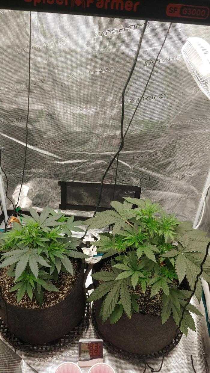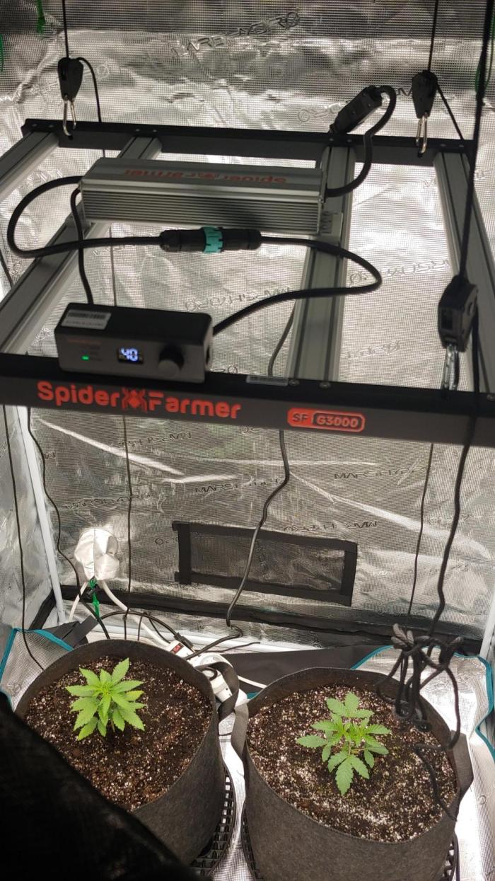 CaptainCannabinoid1 Week 2. First grow with SF G3000 and these girls are growing fast! First grow with Elev8 genetics 100% germination rate. Frosty Bananas (left) Apple Candie (right). This is my First diary and will be adding more details as I go. Tent is actually 39x39 but that wasnt an option. I like that is a bit smaller than the 4x4 I was using, only down side is only 1 door.