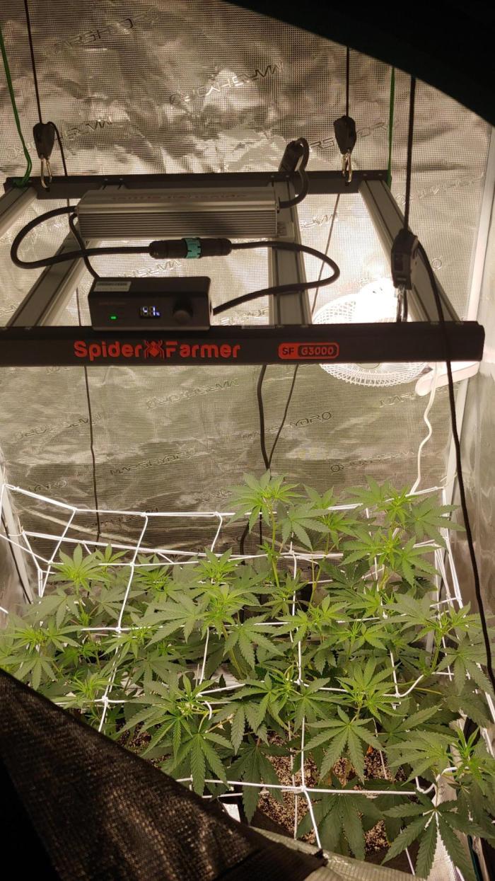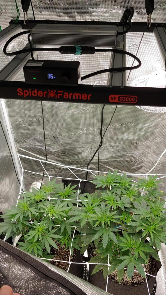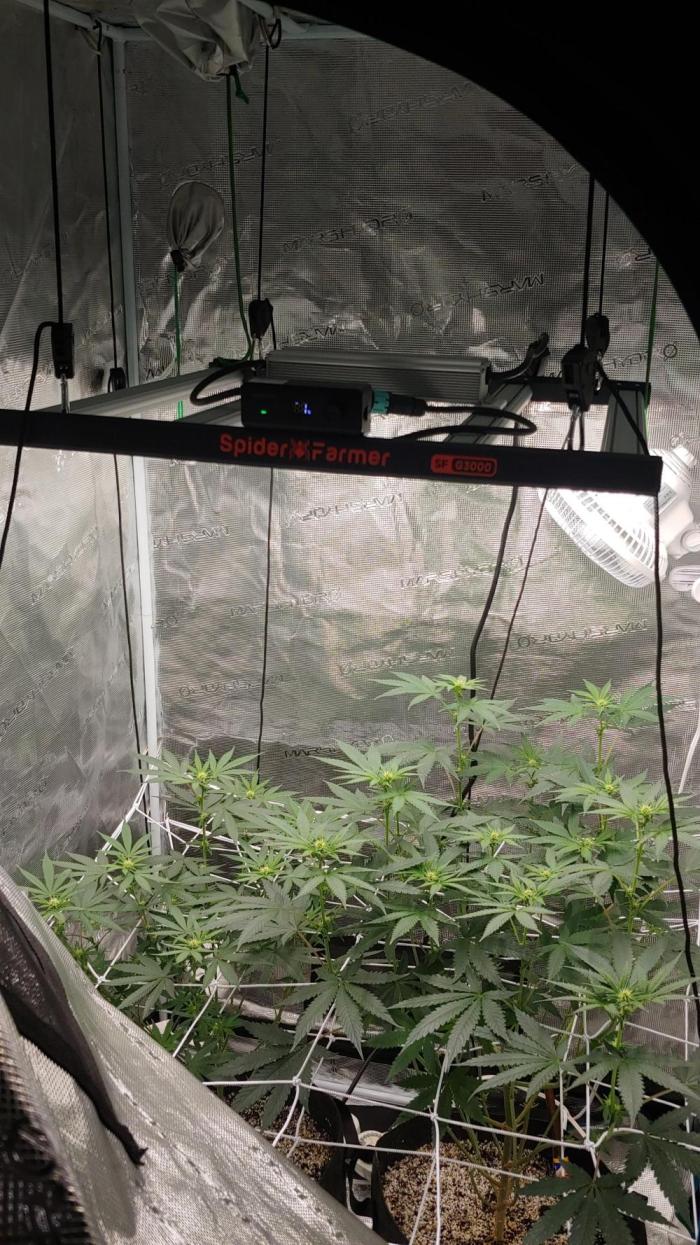 CaptainCannabinoid1 2nd week of flower. Stripped or lollipoped ish.. I finally downloaded the Photon app and not sure why I waited this long. Currently at 600-670 ppfd. Got a little more stretch on the Apple Candie than I wanted and think I can avoid that next time measuring my par. Already seeing some trikes. Loving this G3000 light.