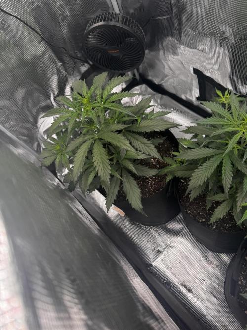 MidsMoney Using general hydroponics mix 1/4 strength currently 700ml. Gonna bump slightly next watering. First real time growing, did a lil space bucket back in the day but never fully finished that grow. Got a nice little sf2000 2x4 spider farmer kit that she’s growing in. Haven’t done any real training. The farthest left plant I have done a little leaf tucking. The others I haven’t monkied with to much, just letting em grow out to see what happens. Really thinking about going to rdwc for the next grow but that’s a wayssss out. I’m on day 21