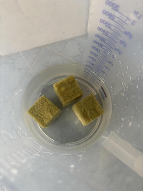 Yrvnn soaked the rockwool cubes in water with hydro roots and PH 5,8 for 24hours, then I put the seeds in. I put more seeds than I actually need to select the best seedling for my DWC.