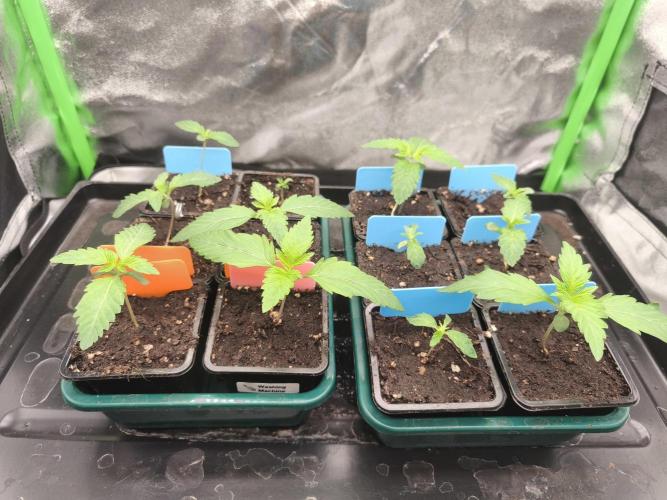 Training techniques will probably be mainlining with 8 colas per plant but again with the nebula method (1 time topping + mainlining 2 branches, using the growth point of those 2 branches to grow 4 colas each + top them at the end). Its an effective technique to reduce the growth phase around 1-2 weeks in comparison of mainlining + topping another time. The downside is a rather "weird" growth pattern in comparison to regular main lining.