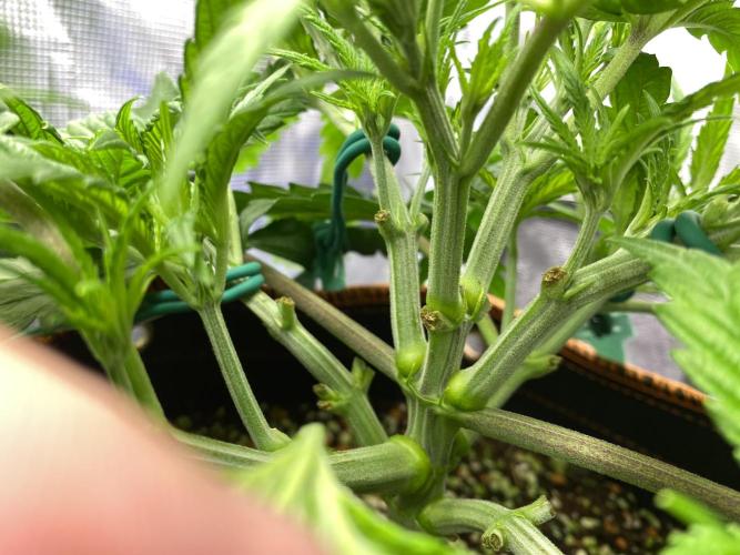 30.10 Temperaturanstieg auf 24- 25° C wegen der neu installierenten Led. RL 69% VPD 0.95. Fette saftige Stängel. Abstand der Nodien kaum vorhanden 😅.