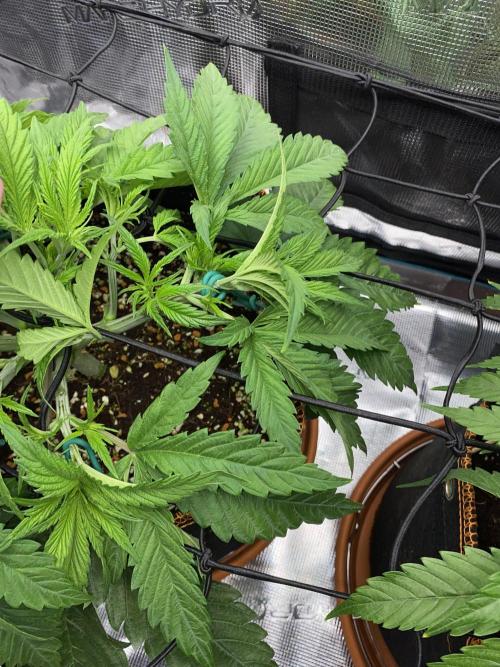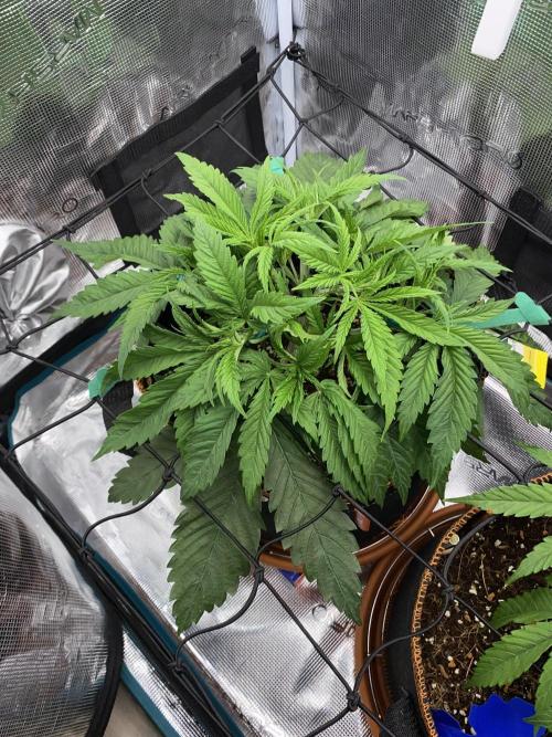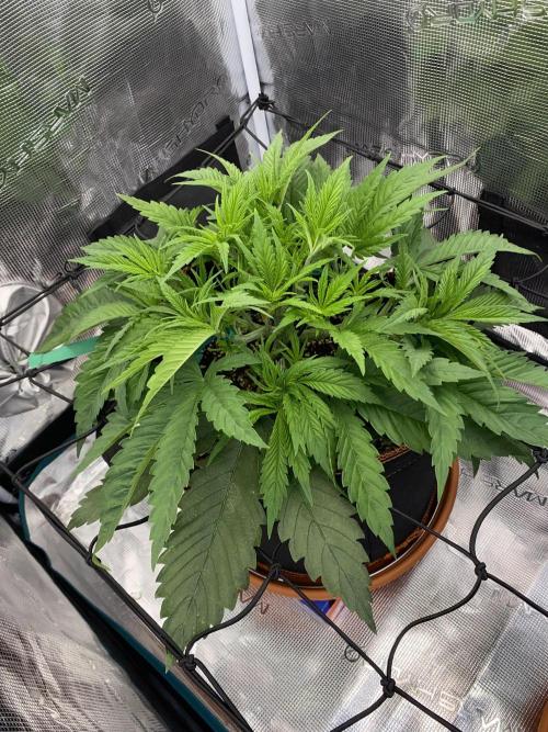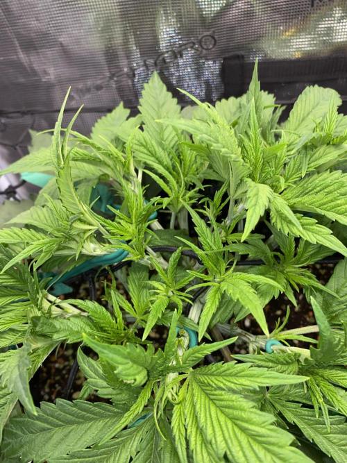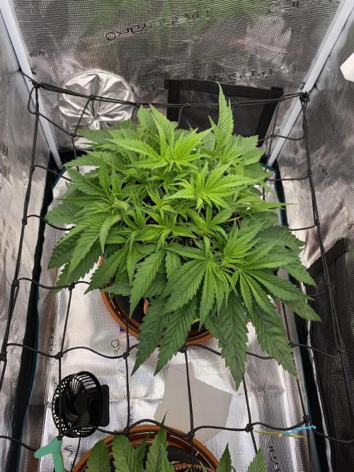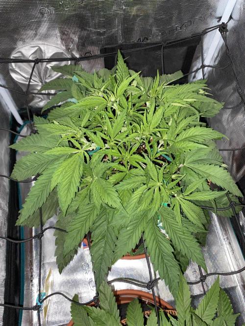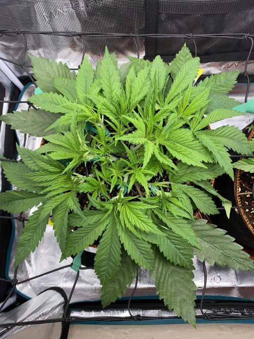 23.10 Runter auf 1.1L pro Tag 1.470 Ec Ph 5.8 wie immer. ca. 500 PPFD. Bisschen leaf tucking, lst und sobald die unteren Blätter keine Chance auf Licht haben werden sie entfernt. Wer sich wundert im Zelt steht noch ein Steckling Gorilla Z.