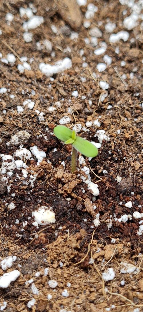 Germination occured within 48 hours and she went in with a sprinkle of great white and shes jus popped her case and broke ground 24 hrs after.
