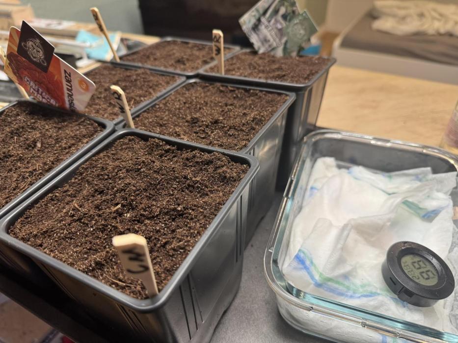 Germination: First seedlings transplanted, left some in the seedling bed because not fully germinated. Added some pH Down to dial in at 6.5pH