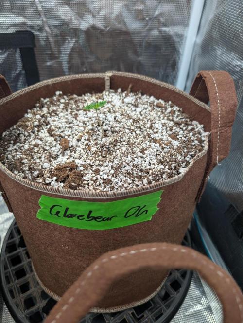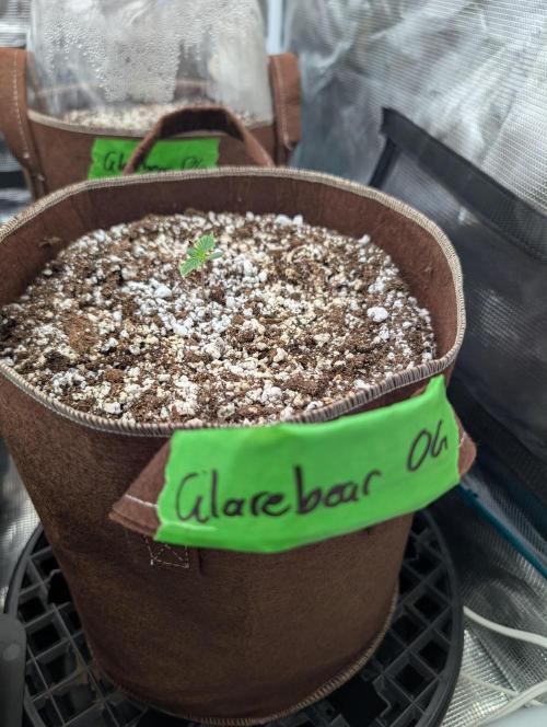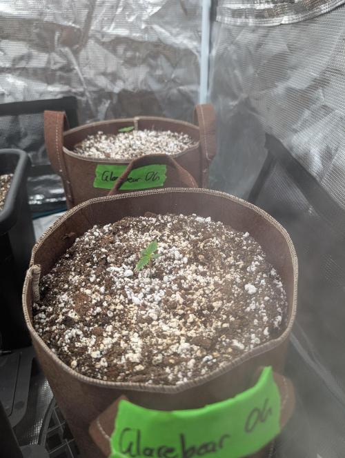 Grow_for_Happiness Trying out a new strain this time around with GlareBear OG. Soaked the soil with 3L of nutrient mix and then planted the seeds and put on the humidity domes. Four days later they're pushing through and today took the domes off and turned yo the lights.