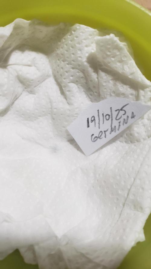 La germine el día 19/10/ y a las 36 horas ya había salido el brote, hoy 22/10/25 ya la puse en una pequeña maceta.