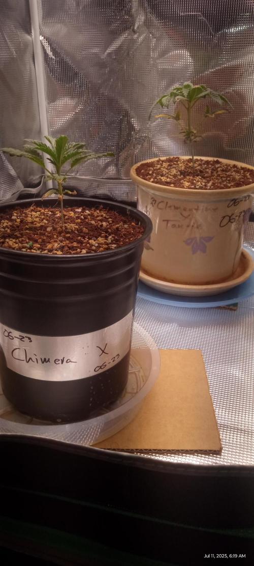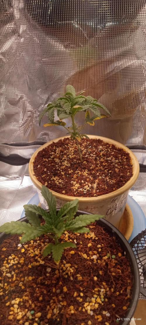 Many bad user inputs from myself during weeks 1 to week 3; over feeding of nutrients, adding in nutrients irrelevant to current growth phase. Both plants seemed to be stunted early on; one (Clementine X Tangie) would later die due to a combination of high heat / low humidity and nutrient block most like leading cause was nutrient block with runoff ppm reading as high as 2400. I had introduced black strap molasses in a high quantity. In all honesty I didn't have a true base nutrients set at this point I was still re familiarizing myself with growing again. I hadn't grown in over 10 years, there was one grow just months prior to this of a bag seed SFV OG (Fem) and Crockett's TrueOG x Tangie (Male) harvested around the same time as this project's start time. It wasn't great but not terrible either lol.