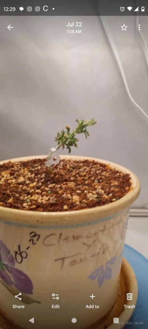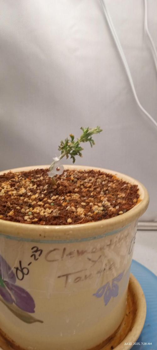 Clementine X Tangie had more robust feeling leafs almost as thick feeling as real citrus leafs. Unfortunately it would die this week after more defoliation and topping it was left practically bare. Dying 2 or 3 days after these photos. I was still over feeding nutrients and making bad user inputs ppms still reading in the mid 2000's I would start a full flush after this week and switch to Green Rush Nutrients Leafy Green Grow trying to keep most nutrient inputs as close to organic as possible.