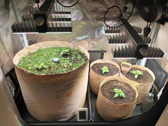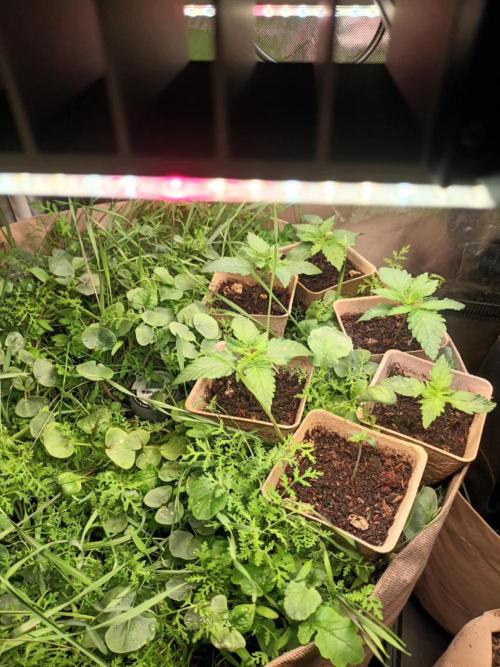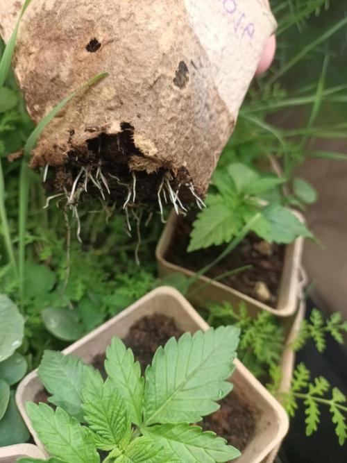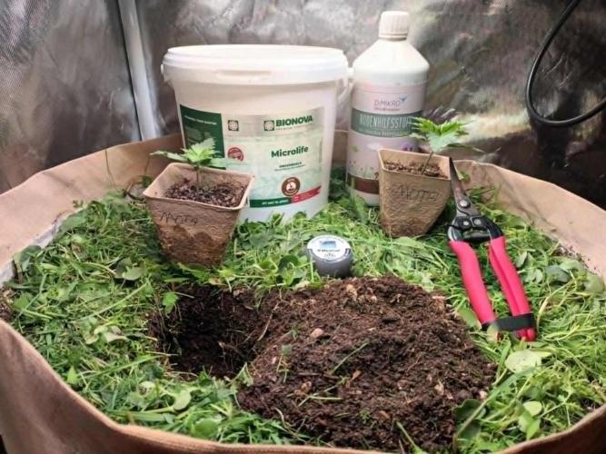 Die meisten Pflanzen sind schon mit ihren Wurzeln durch die Pappe der Anzuchttöpfchen gestoßen, selbst Würmer haben schon aus dem 100L Topf den Weg in die kleinen Papptöpfchen gefunden :D