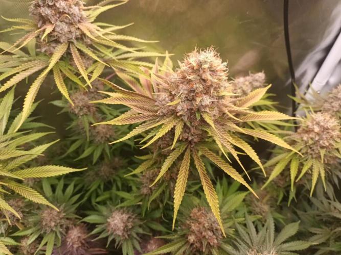 Die Motavation sind zwei verschiedene Phänotypen, die hintere ähnelt stark der Warlock und die Vordere kann ich noch gar nicht einschätzen, dere Blüten wachsen wie kleine Tannenzapfen und riechen stark nach Nadelholz.
